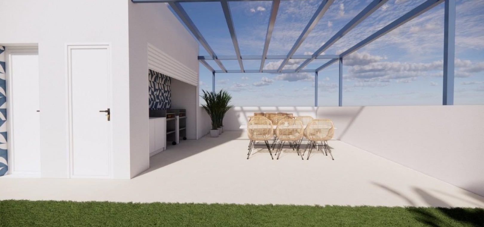 The highlight of this development is the communal roof-top solarium, which is accessible by stairs or lift. Residents can enjoy a roof-top swimming pool, an outdoor kitchen area, barbecue and pergola-covered dining areas, and a sunbathing area with artificial grass. This exclusive rooftop oasis is the perfect place to relax under the Spanish sun.