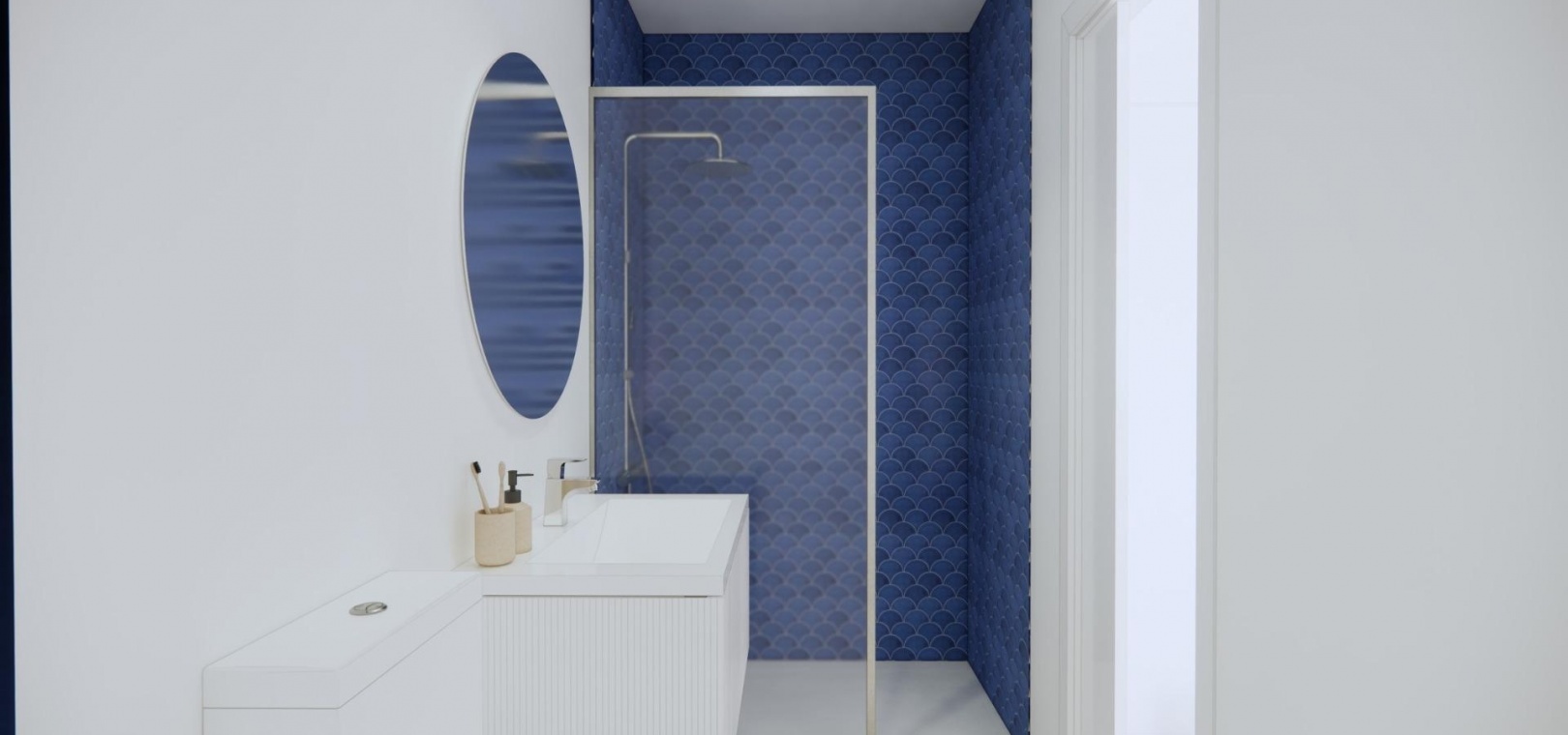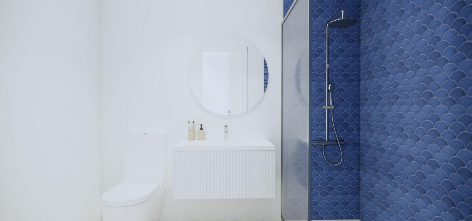 Modern bathrooms equipped with furniture, mirrors and shower screens