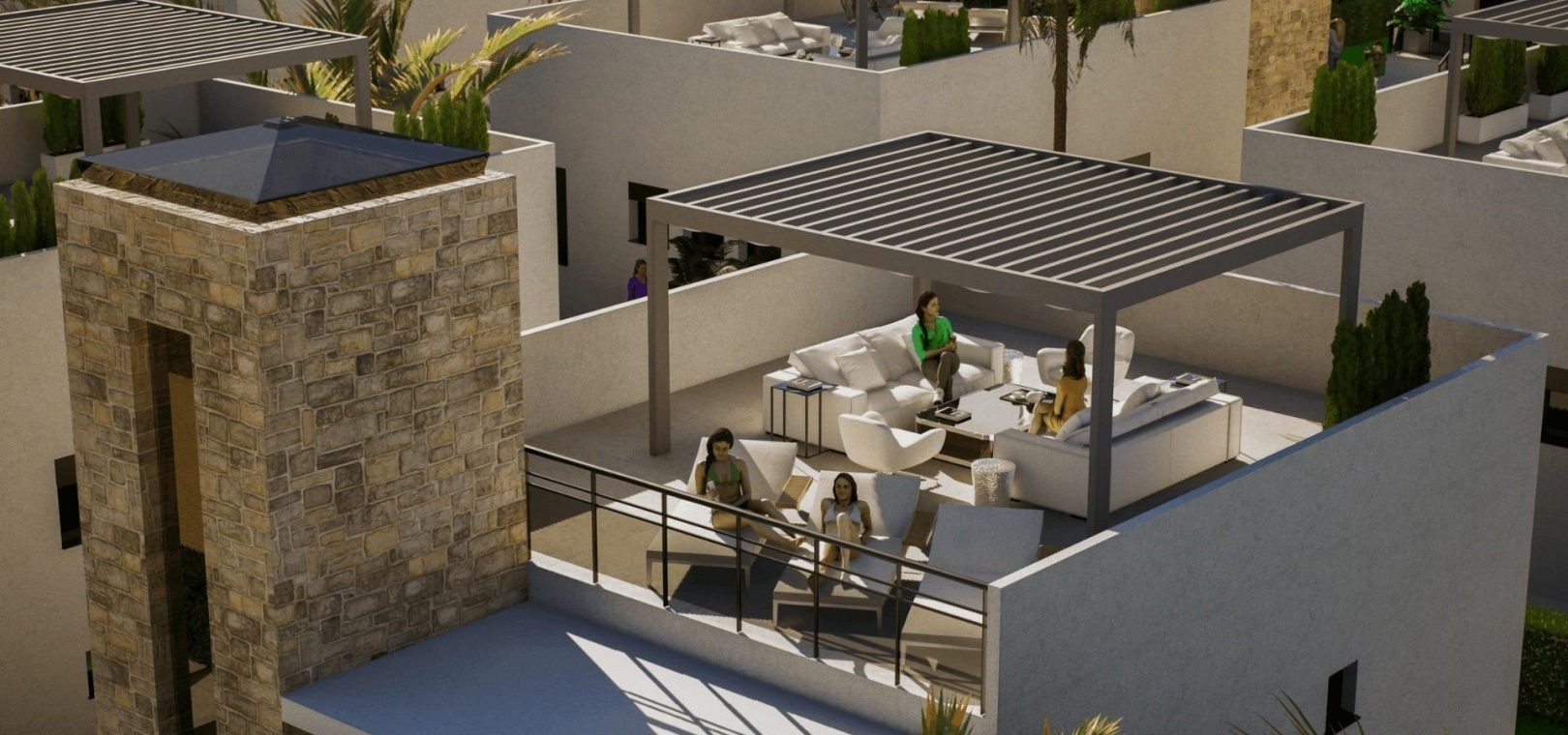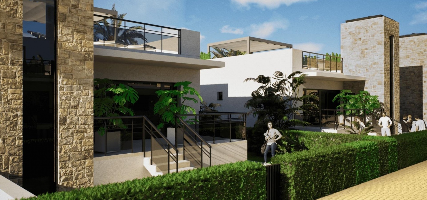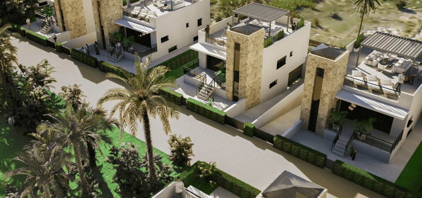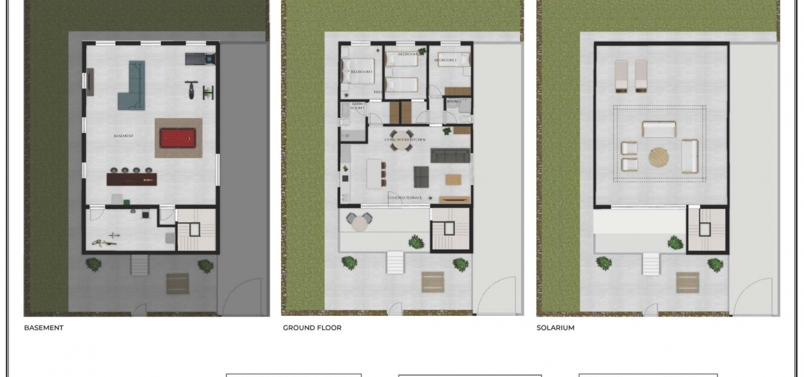 The villas are designed with interior stairs connecting all levels, ensuring easy access between the basement, main living area and rooftop solarium.