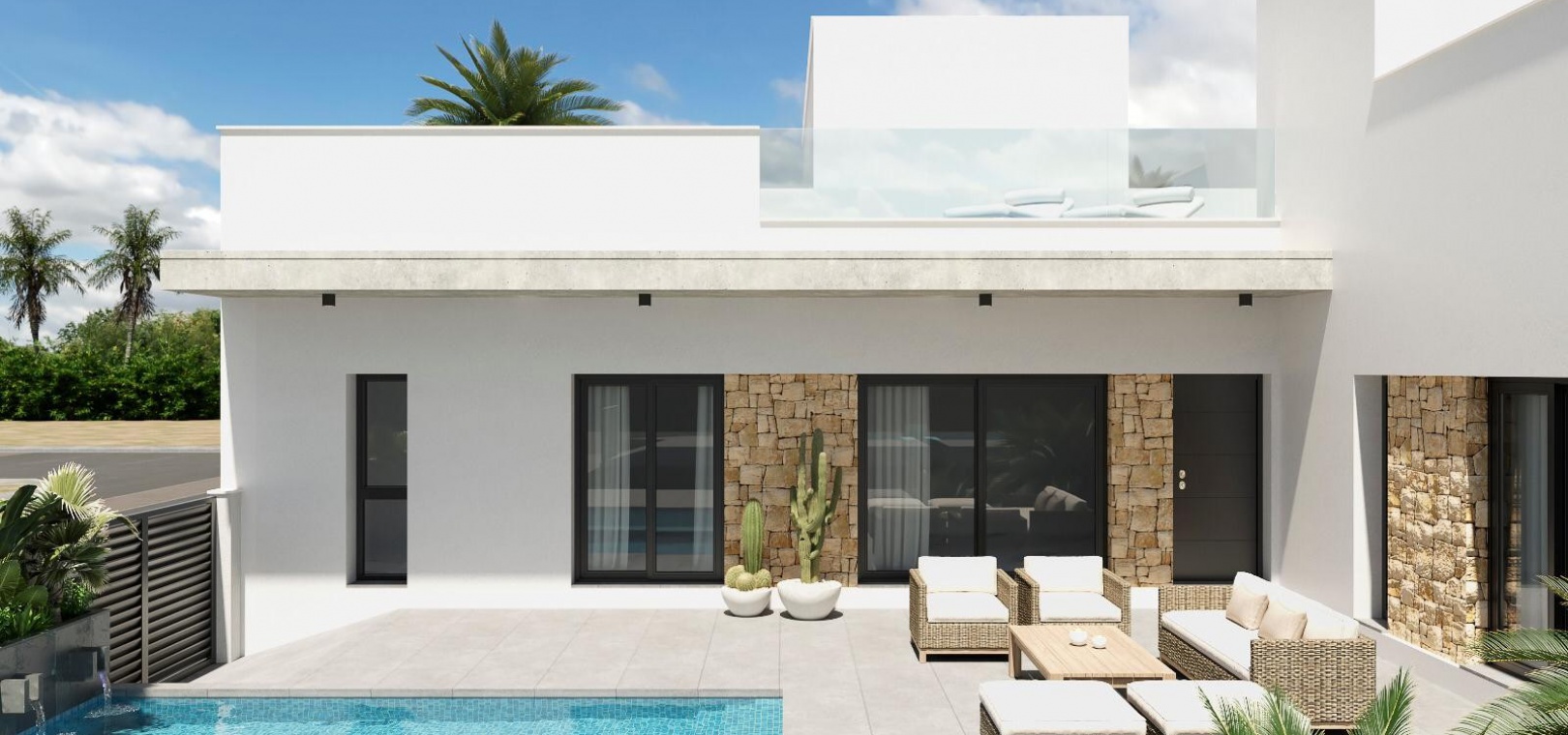 Denna villa är byggd till högsta standard och har en privat pool, ett modernt kök med vitvaror, LED -belysning, fullt utrustade badrum, takterrass och varm/kall luftkonditionering.