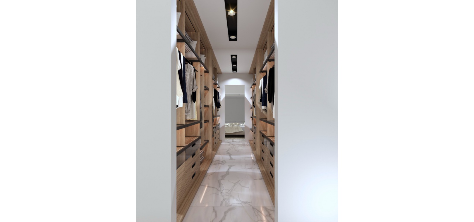 På första våningen hittar du sovrummet med inbyggda garderober, eget badrum och den övre solterrassen där du kan njuta av öppen utsikt och sol hela dagen.