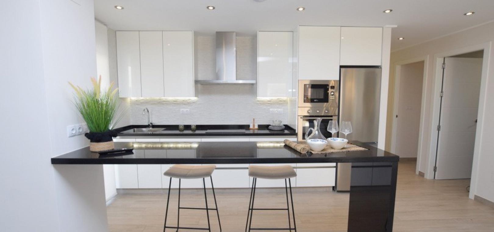 Anläggningen har vackra gemensamma trädgårdar med pool, lekplats och pool och varje fastighet inkluderar säker underjordisk parkering, utrustat kök med vitvaror och LED-belysning.