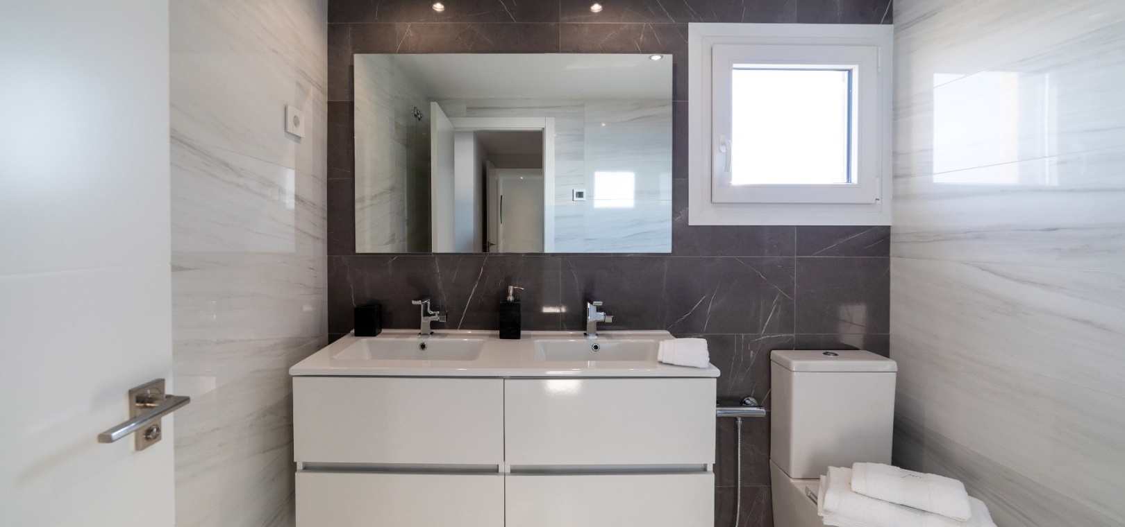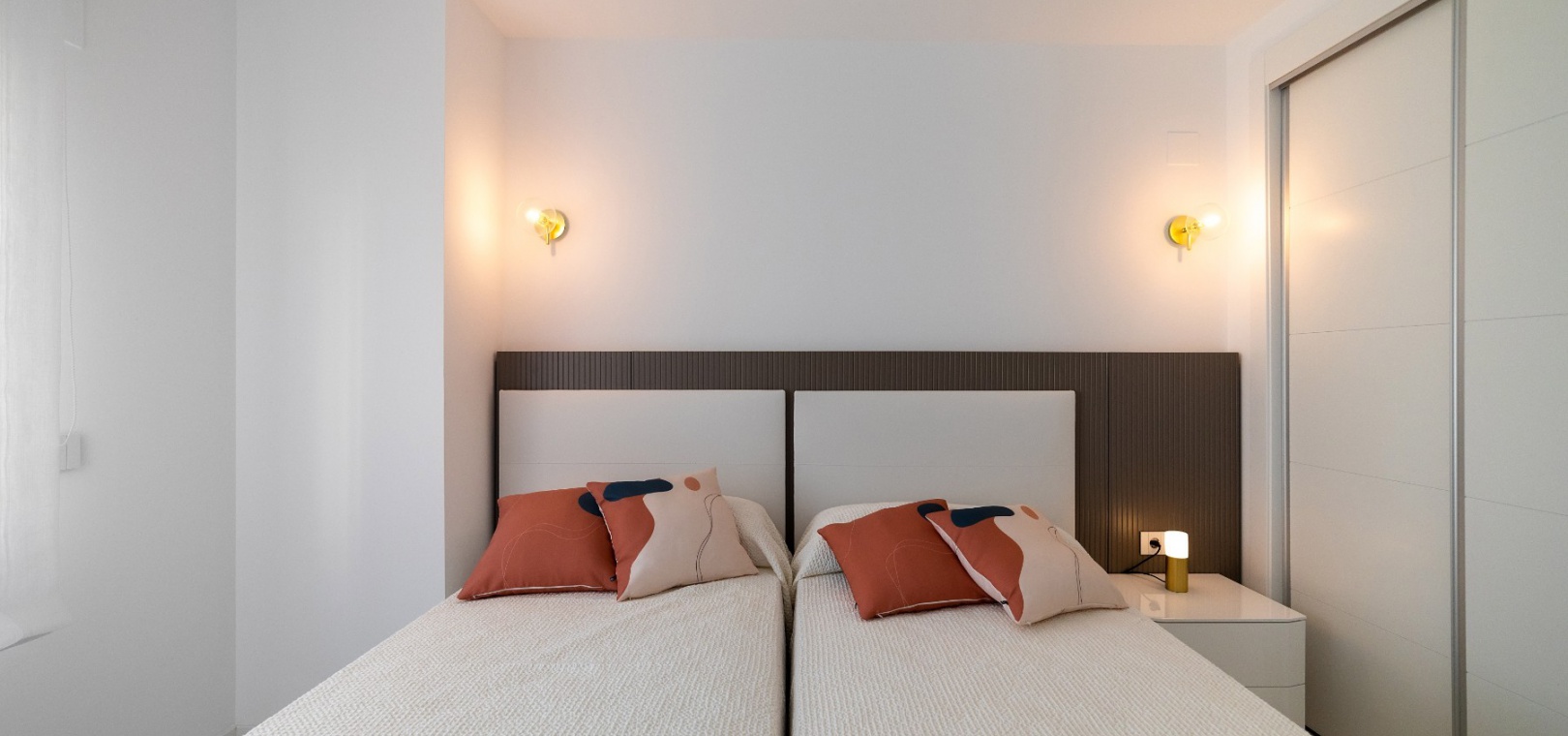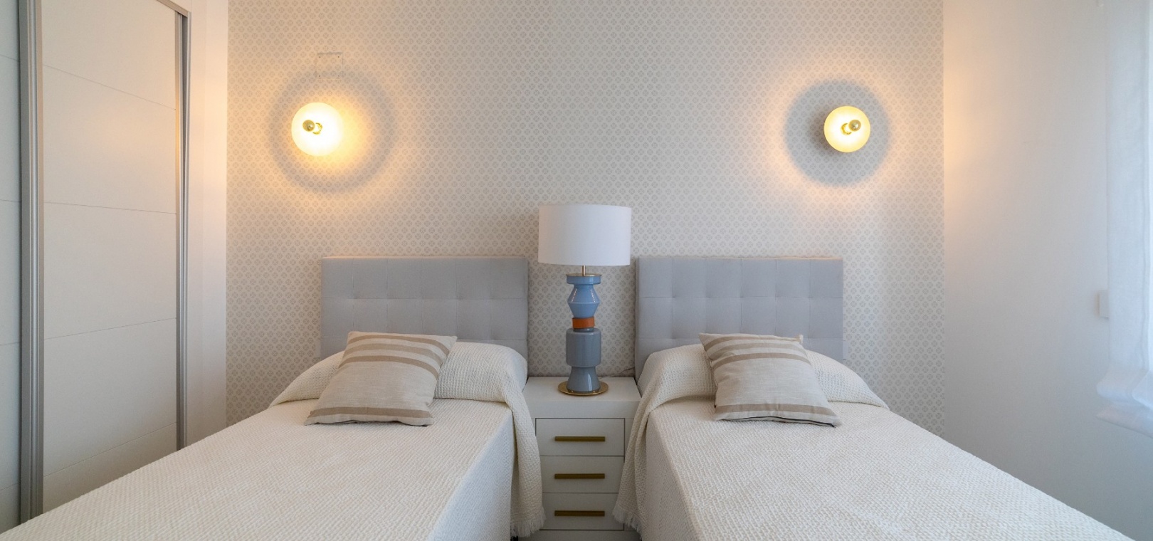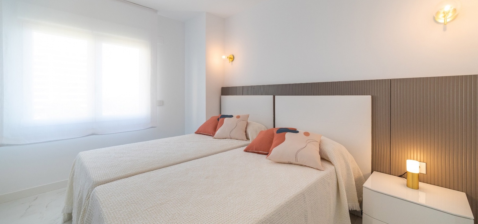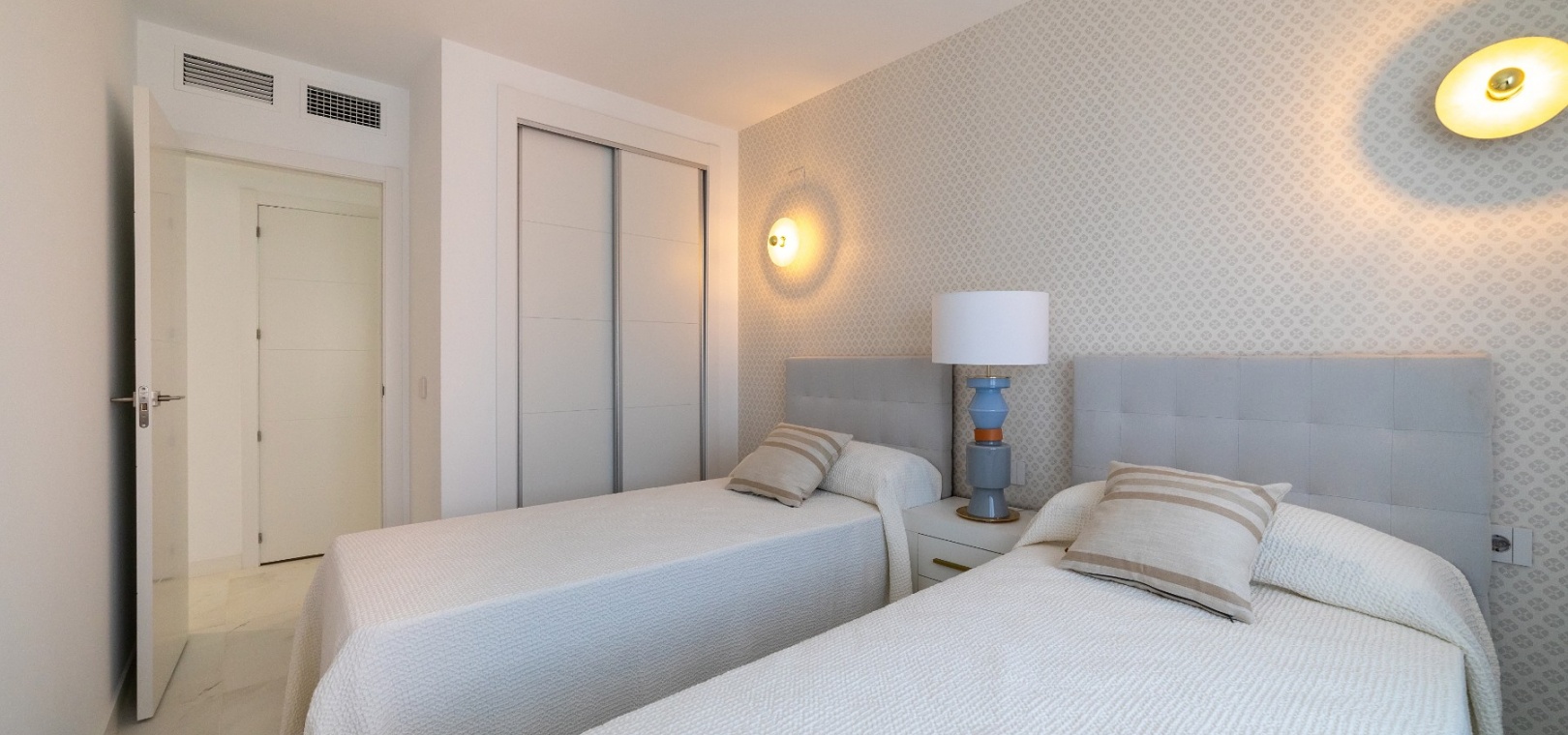 Denna lägenhet med 2 sovrum består av ett vardagsrum med altandörrar som leder ut till terrassen med havsutsikt, ett kök i öppen planlösning, matplats, ett master bedroom med inbyggda garderober och eget badrum, ytterligare ett dubbelrum och ett gästbadrum.