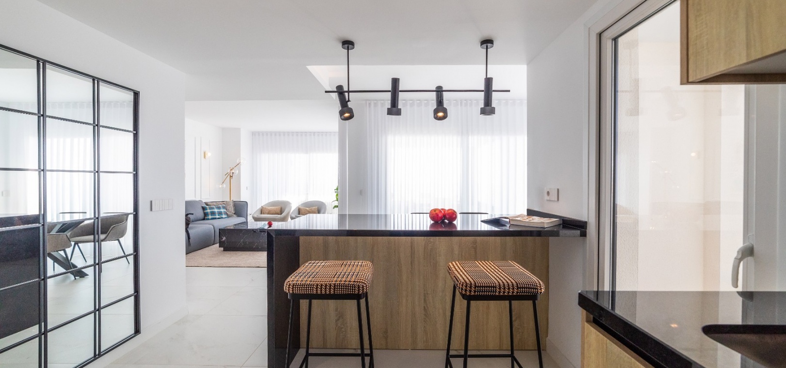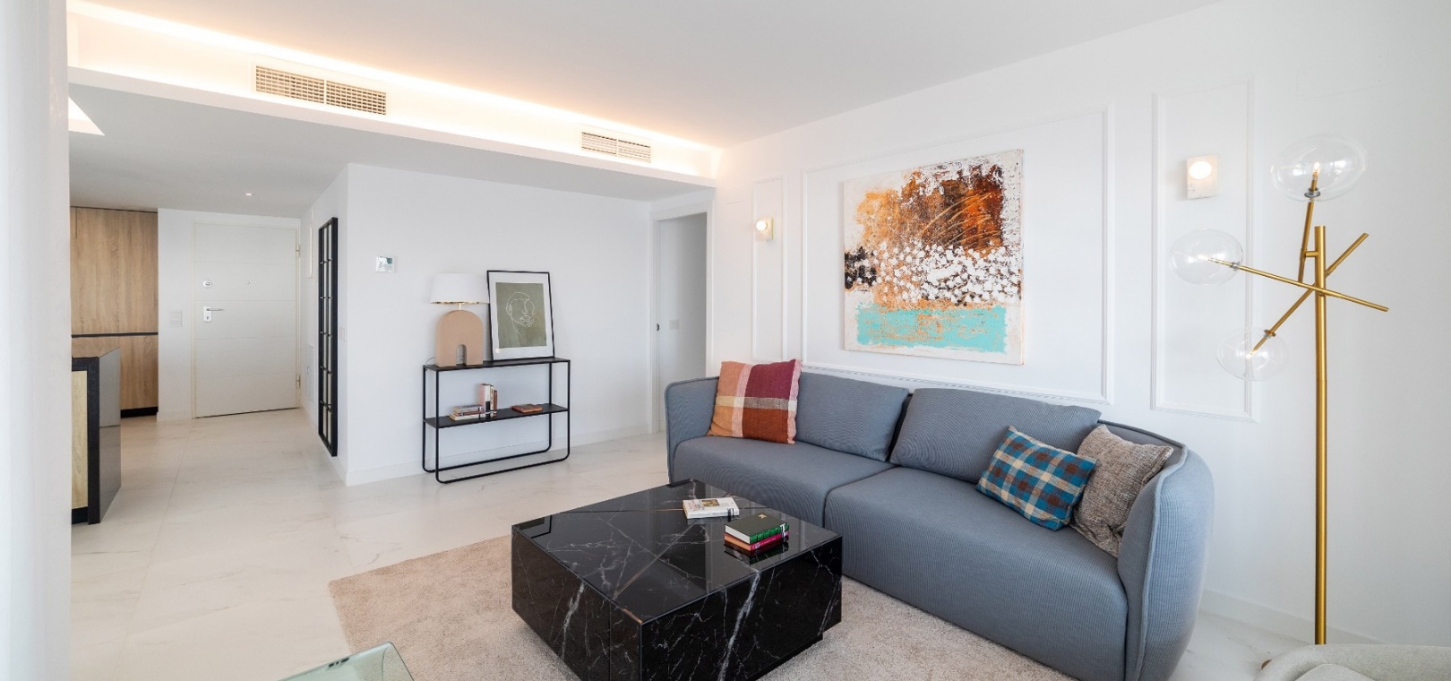 Dessa fantastiska lägenheter levereras komplett med varm/kall ventilerad luftkonditionering, modernt kök med inbyggda apparater, kompletta badrum med speglar, duschskärmar och golvvärme och varje fastighet har också säker underjordisk parkering med ett förråd.