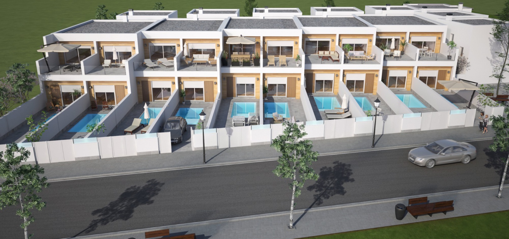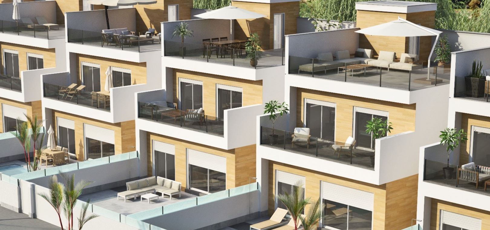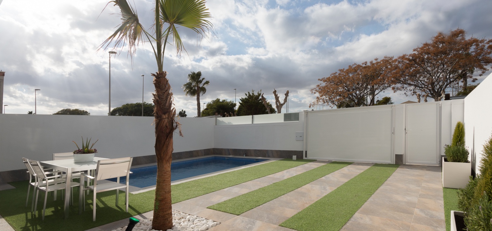 Palmeras Gold X i San Pedro del Pinatar har precis släppts, en lyxig utveckling av 18 villor som ligger bara några minuters bilresa från San Pedros centrum och den fantastiska stranden i Lo Pagan. Denna fastighet är byggd enligt högsta standard och kommer med privat pool med bänkjacuzzi, modernt kök med inbyggda vitvaror och vinkylare, elektriska fönsterluckor och golvvärme i badrummen.