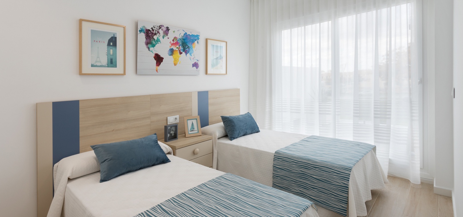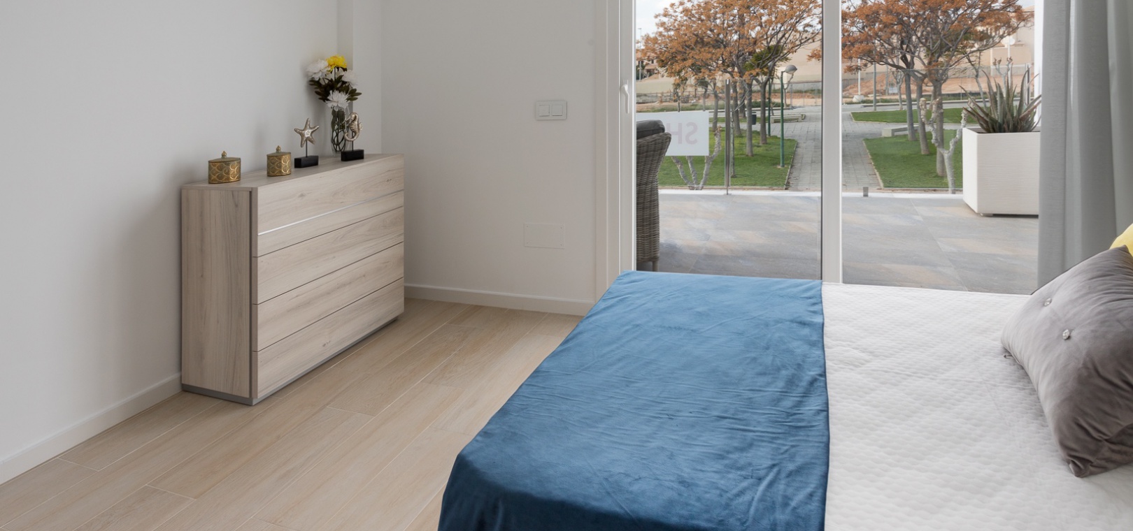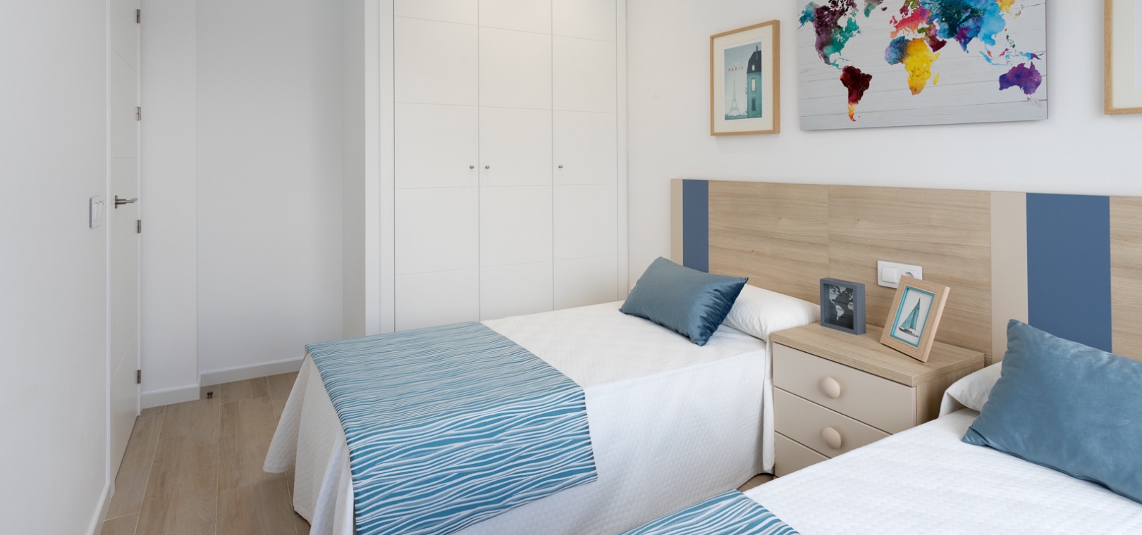 På första våningen finns ett master bedroom med klädkammare och privat terrass, ytterligare ett dubbelrum med inbyggda garderober och ett fullt utrustat badrum.