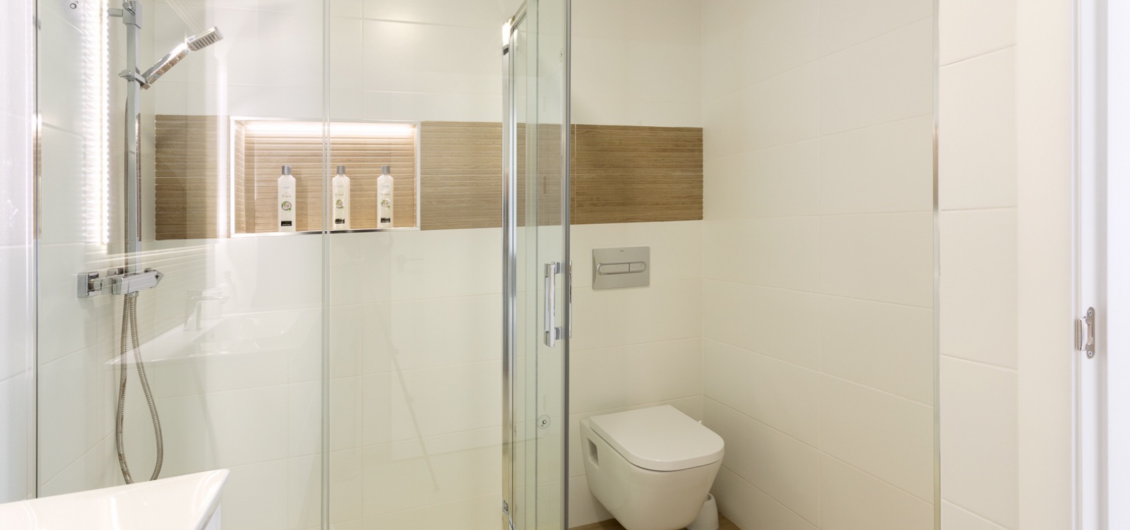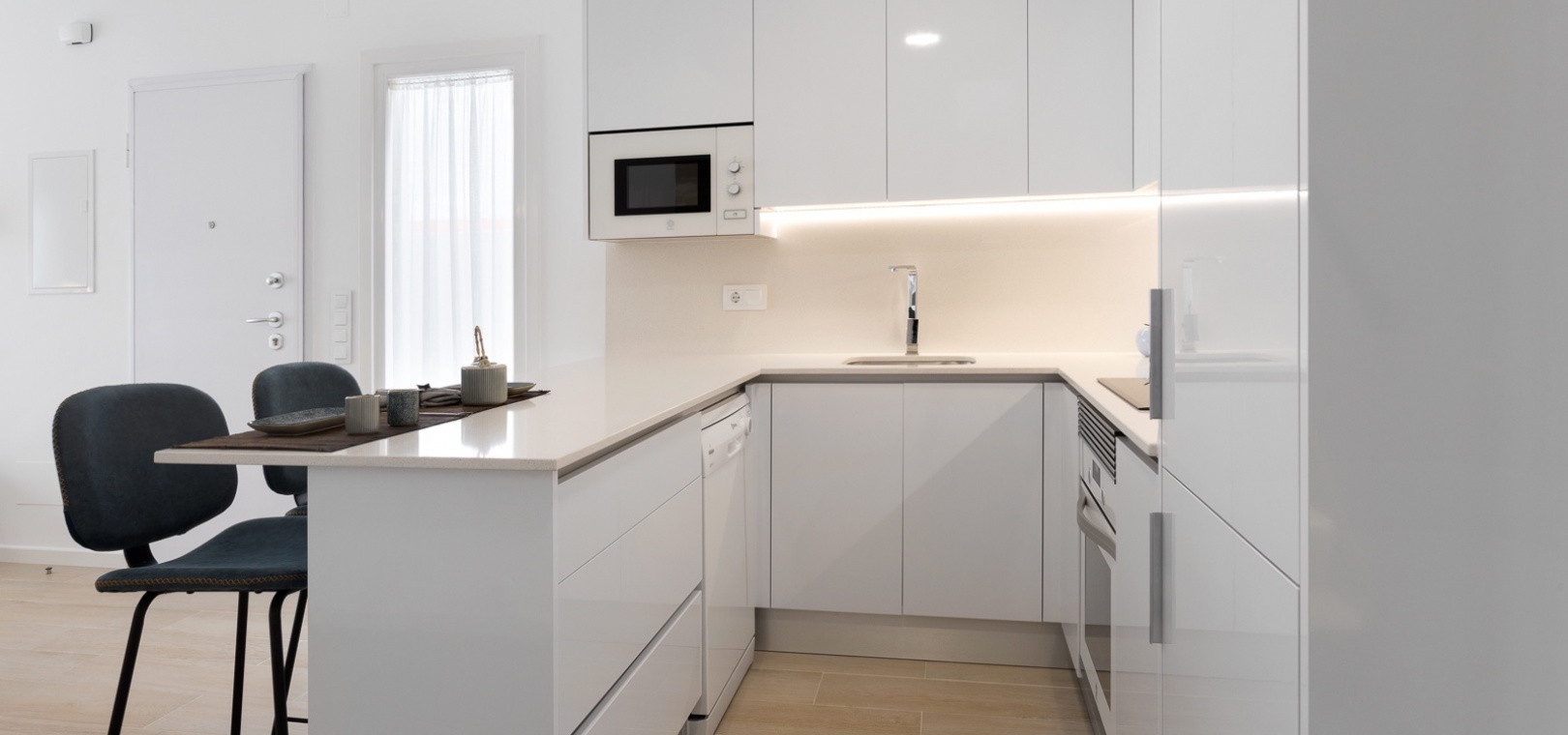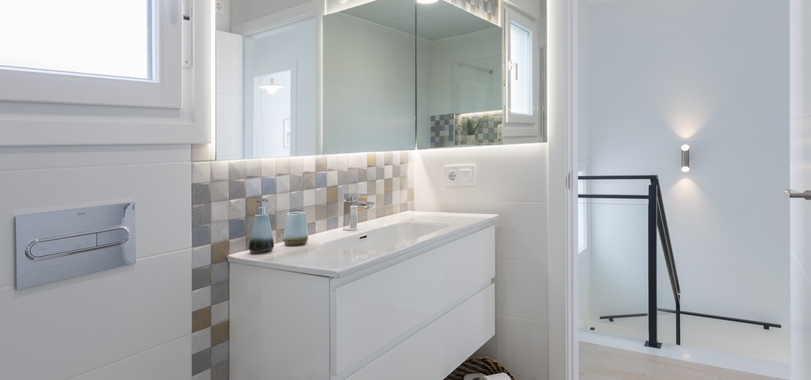 På första våningen finns ett master bedroom med klädkammare och privat terrass, ytterligare ett dubbelrum med inbyggda garderober och ett fullt utrustat badrum.