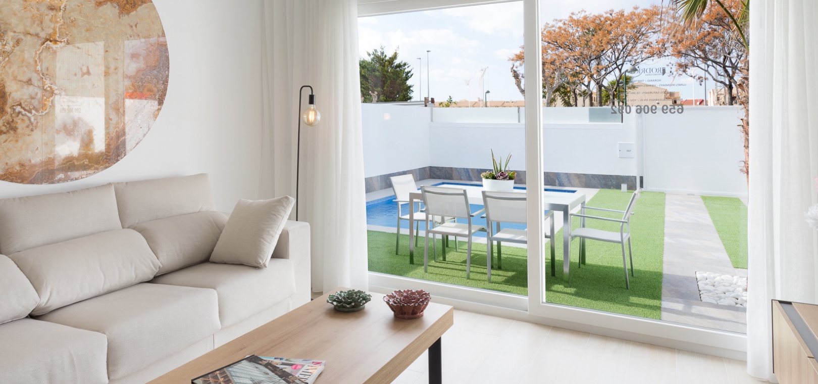 Denna fantastiska villa består av ett rymligt vardagsrum/matrum med uteplatsdörrar i full bredd som leder ut till trädgården med privat pool, ett kök i öppen planlösning med inbyggda apparater inklusive ugn, spis, fläkt, integrerad kyl/frys och diskmaskin, tvättmaskin och mikrovågsugn. , ett dubbelrum med inbyggda garderober och ett fullt utrustat badrum.