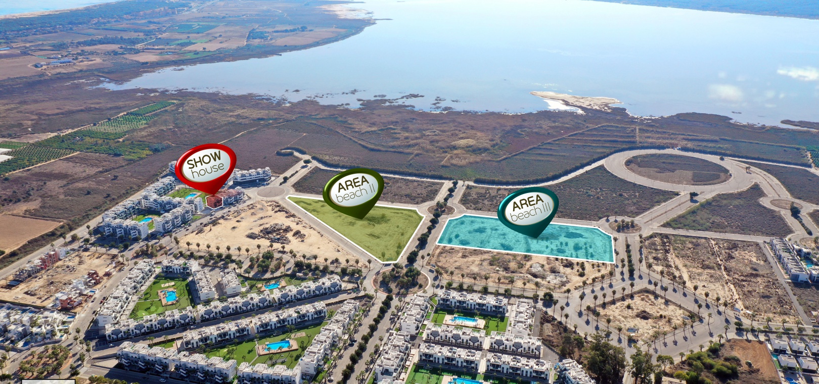 Area Beach 3 är en modern utveckling av hög kvalitet med lägenheter med 2/3 sovrum och 2 badrum belägna i El Raso nära Guardamar, en kort bilresa från stränderna med blå flagg. El Raso är ett moget bostadsområde som har ett kommersiellt område med en mängd bekvämligheter, inklusive apotek, snabbköp, affärer, barer och ett stort utbud av restauranger. Alicante stad och den internationella flygplatsen ligger en kort 30 minuters bilresa bort.