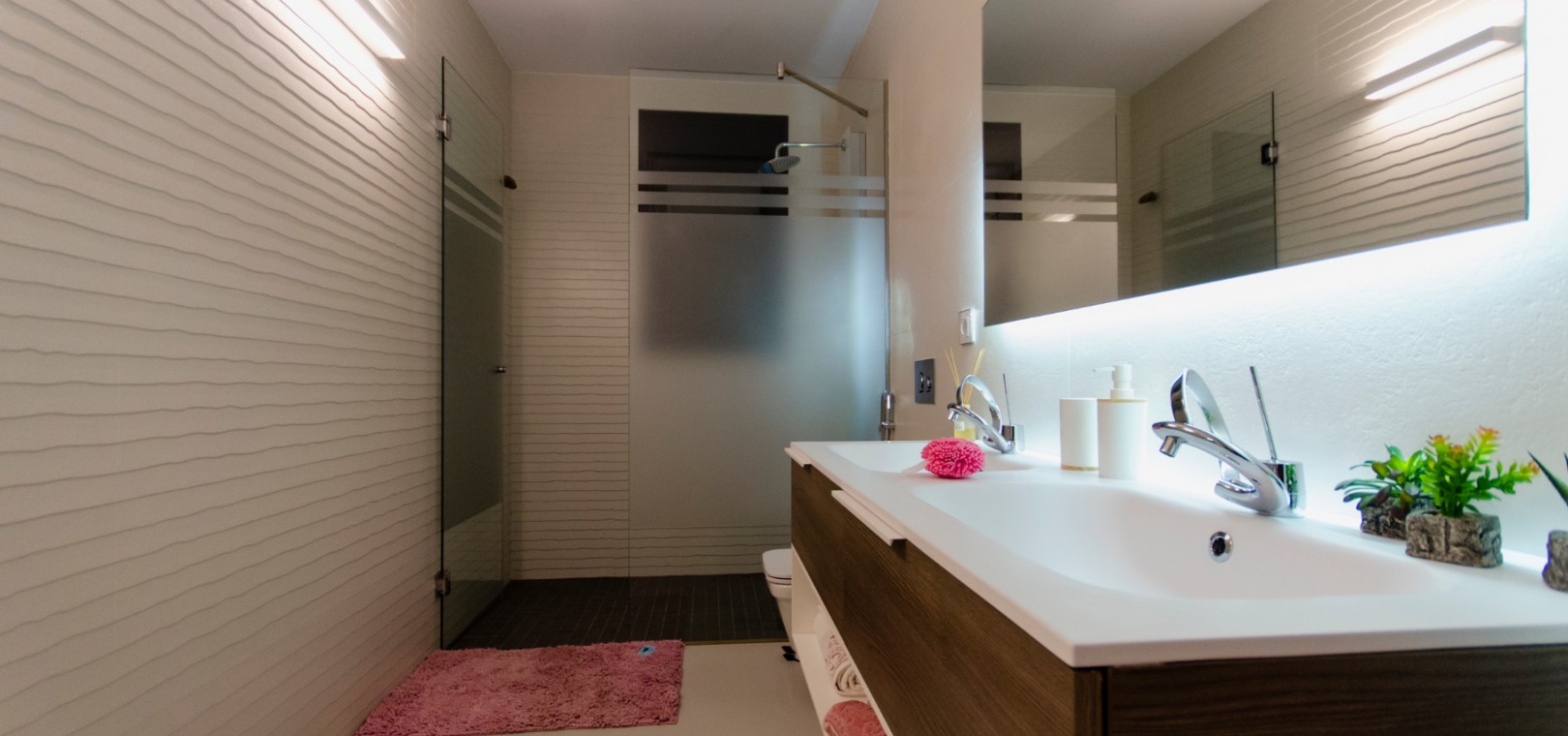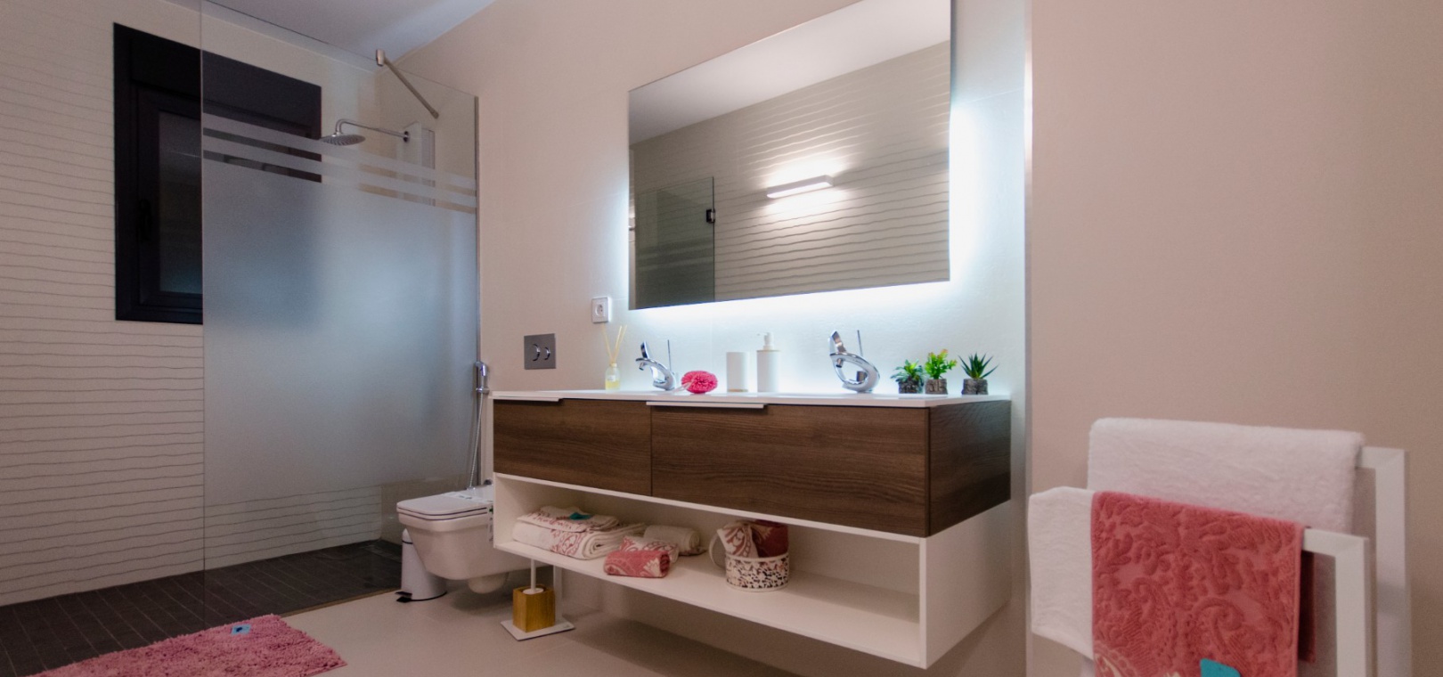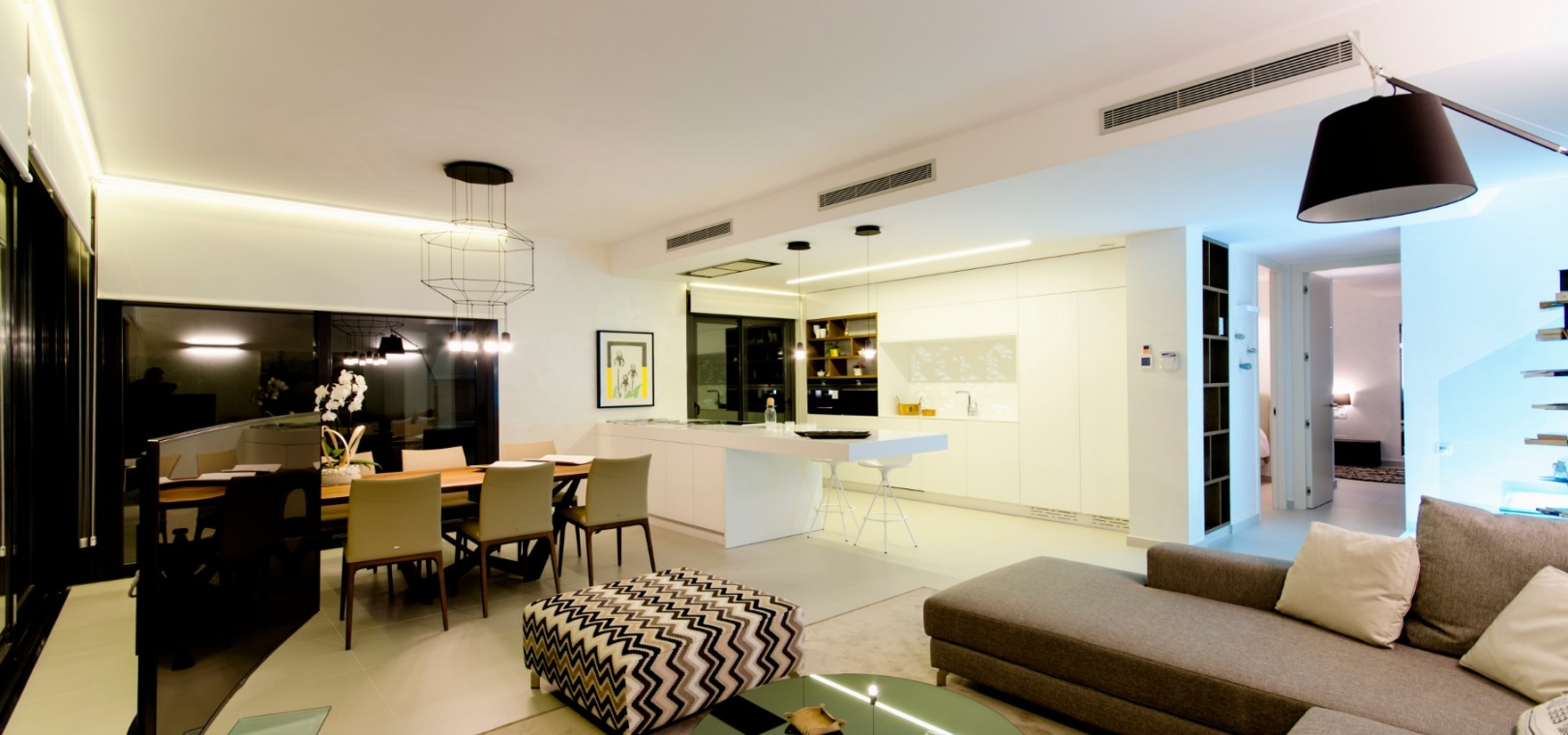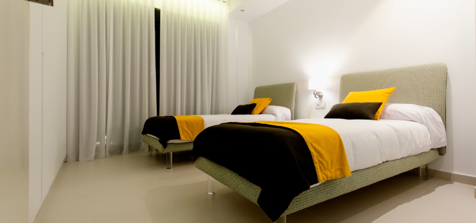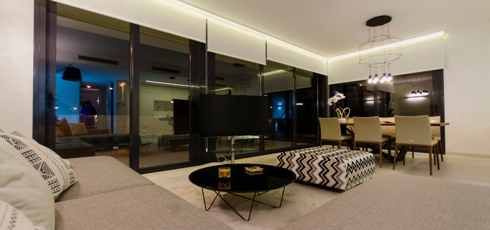 På första våningen finns ett sovrum med inbyggda garderober, eget badrum och privat terrass, ytterligare ett sovrum med inbyggda garderober och badrum och en intern trappa som leder upp till ett privat taksolarium där du kan njuta av magnifik havsutsikt och hela dagen sol.