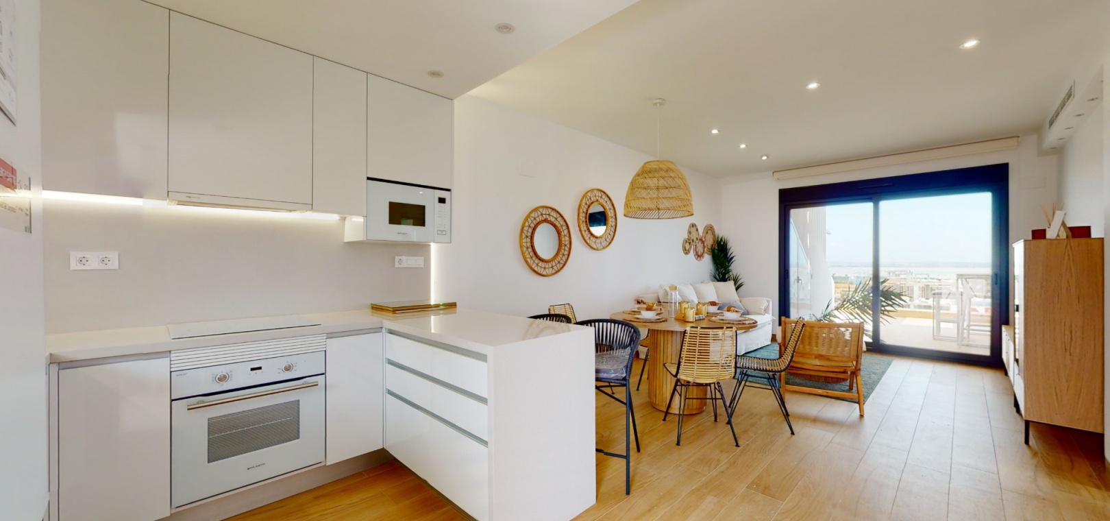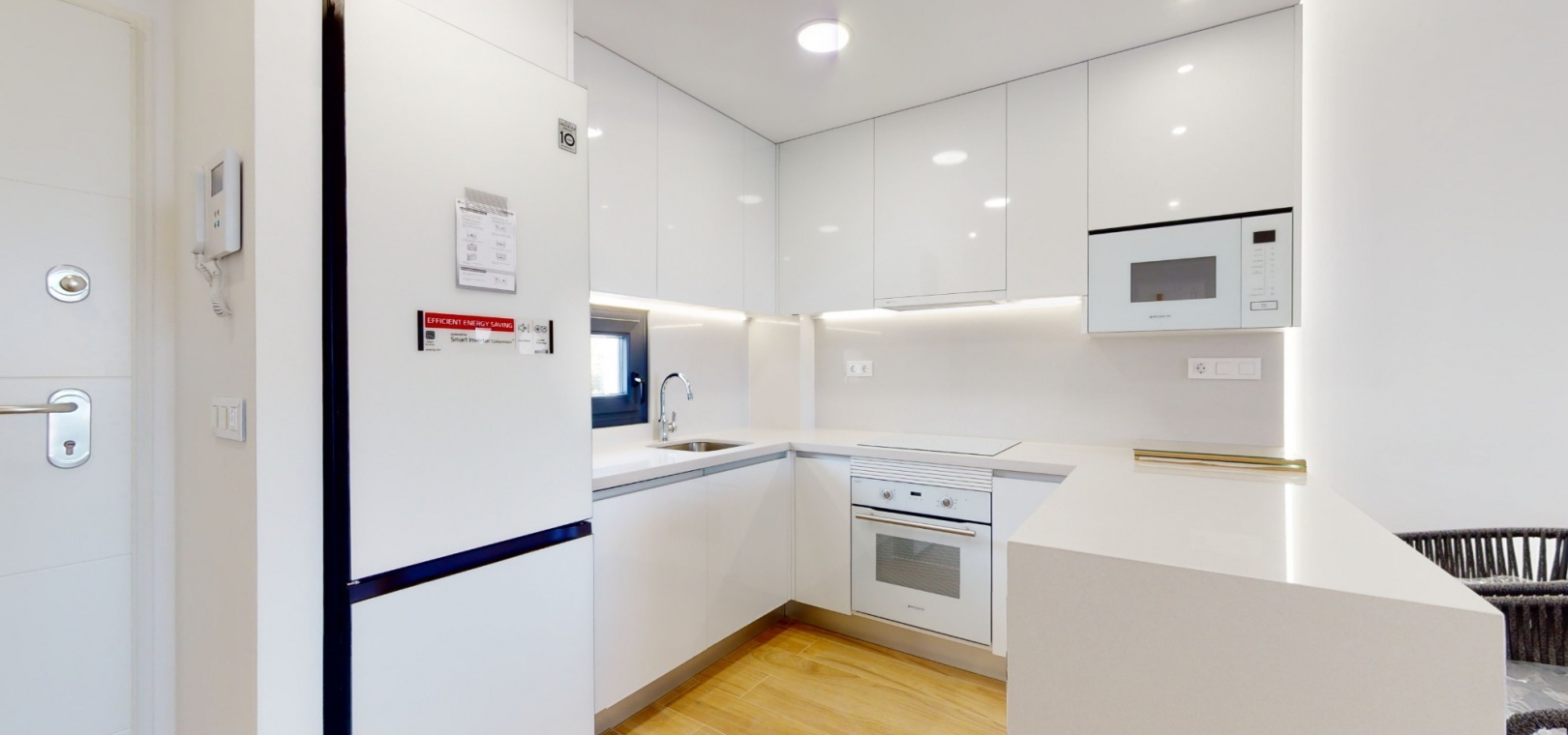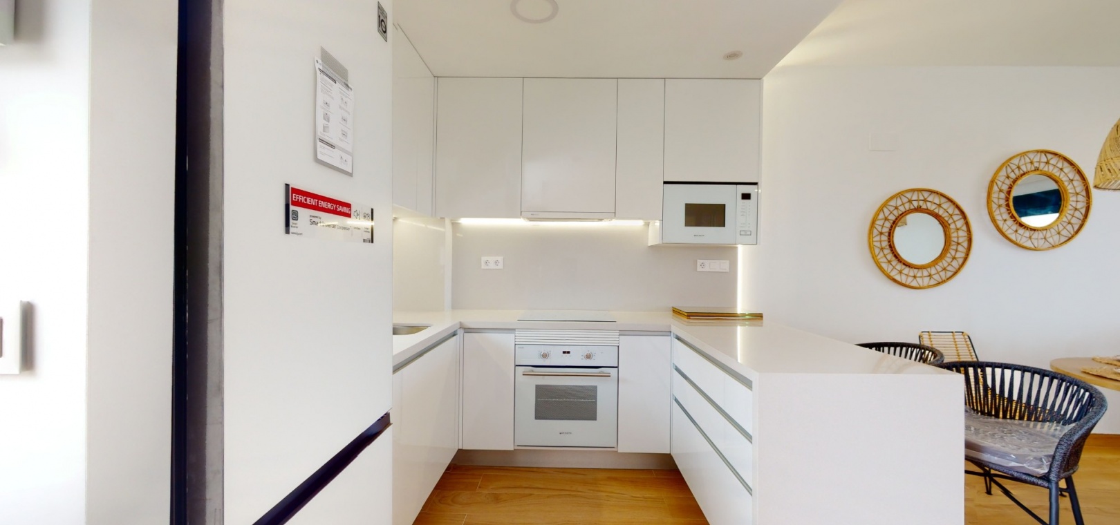 Varje lägenhet har varm/kall luftkonditionering, LED-belysning, golvvärme i badrummen, säker parkering och förråd samt ett modernt kök med inbyggda vitvaror.