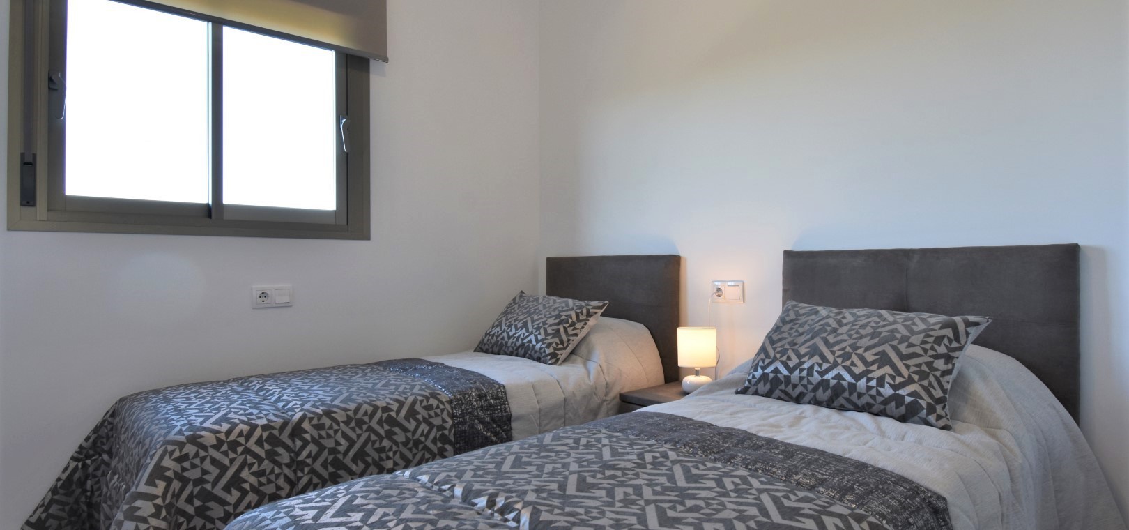 Denna lägenhet på första våningen består av ett stort vardagsrum med altandörrar som leder ut till den stora solterrassen, matplats, fullt utrustat modernt kök med vitvaror inklusive ugn, spis, fläkt, kyl/frys, tvättmaskin, diskmaskin och mikrovågsugn, en master sovrum med inbyggda garderober och eget badrum, ytterligare två dubbelrum också med inbyggda garderober och ett gästtoalett.