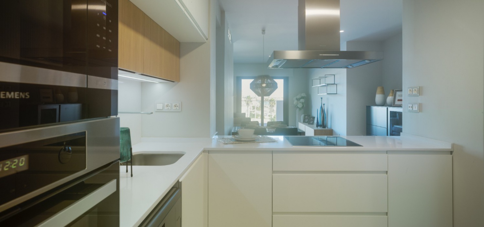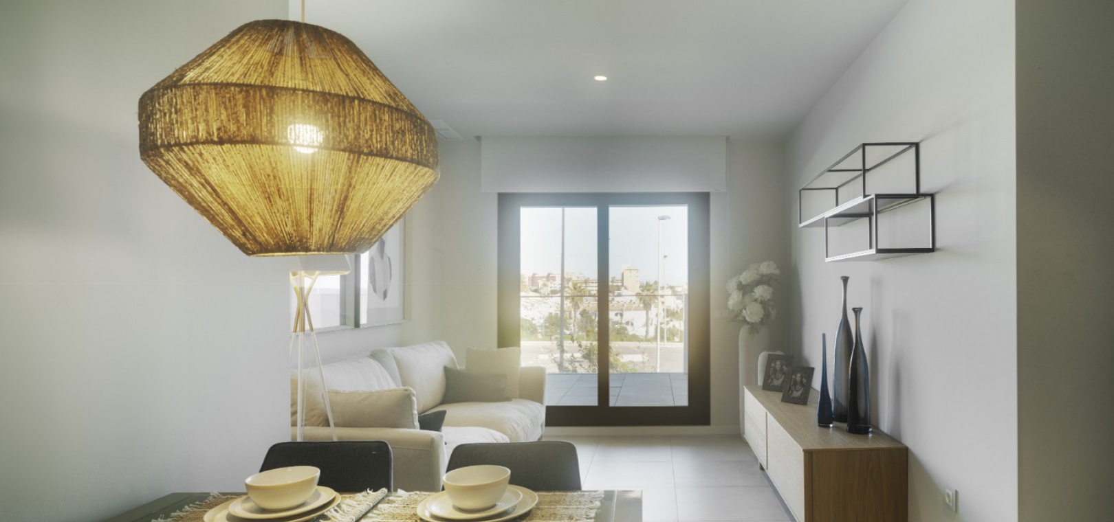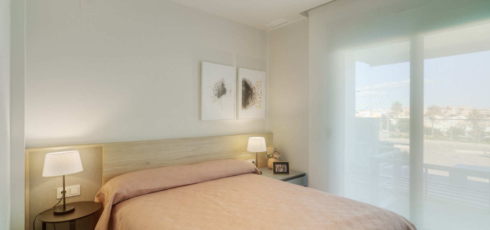 Denna lyxiga moderna lägenhet med 3 sovrum består av ett vardagsrum med öppen planlösning med altandörrar som leder ut till solterrassen, matplats, modernt kök med inbyggda apparater inklusive ugn, spis, fläkt, kyl/frys, tvättmaskin, diskmaskin och mikrovågsugn, en master bedroom med inbyggda garderober och eget badrum, ytterligare två sovrum också med inbyggda garderober och ett gästtoalett.