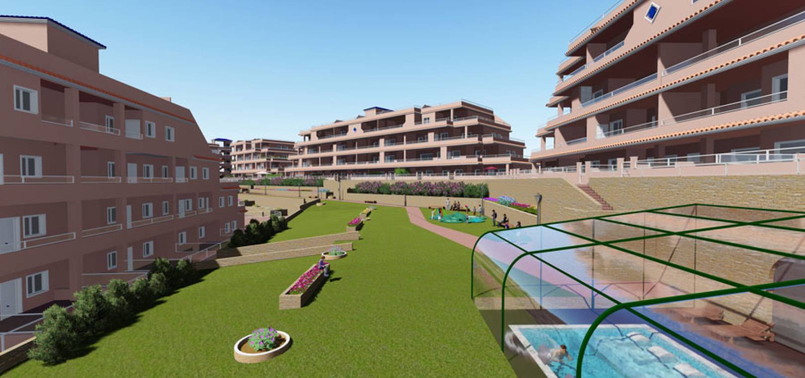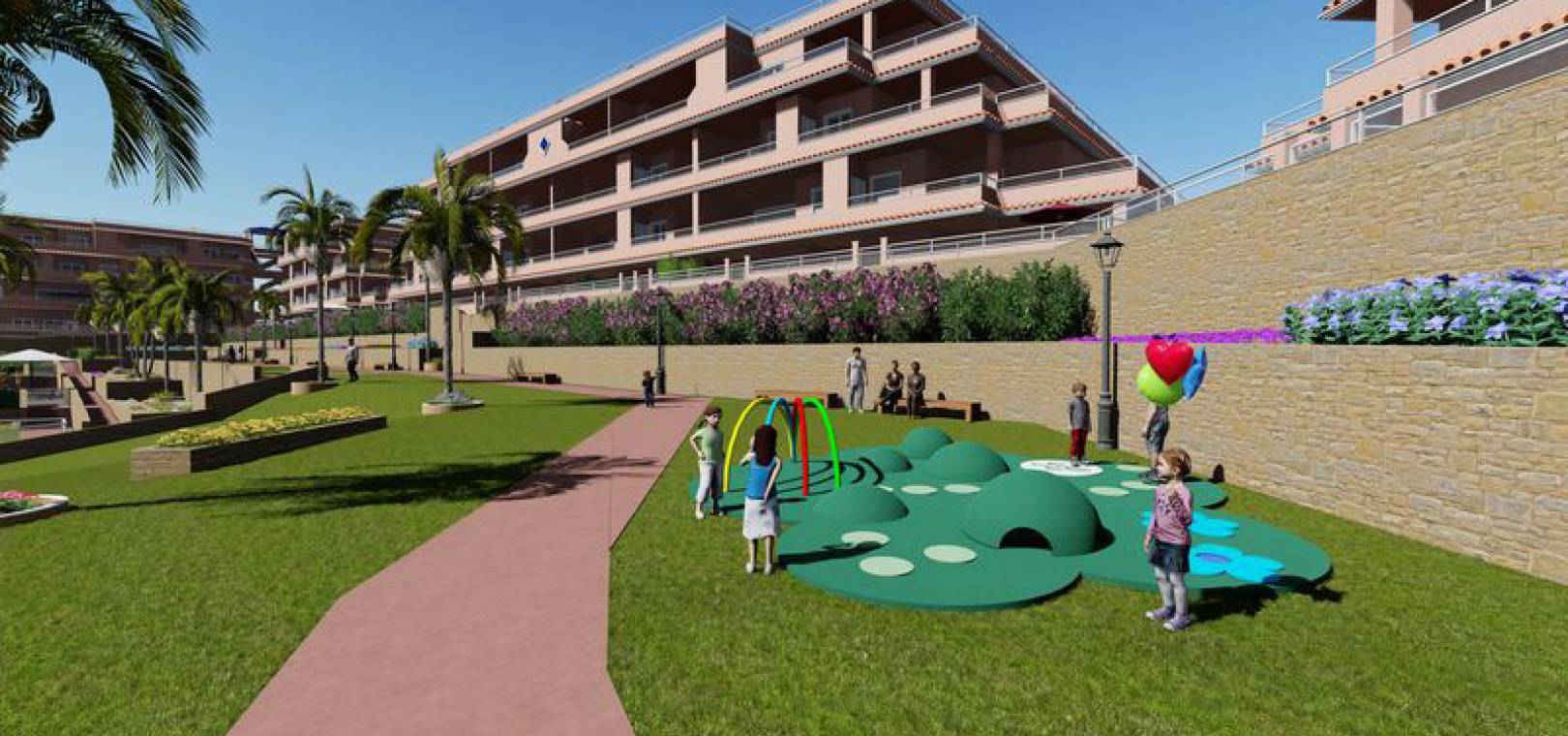De gemensamma områdena erbjuder mer än 5.000 m2 gröna områden med pooler, spa med jacuzzi, bastu, gym och barnområden. Detta gör utvecklingen till en idealisk plats att njuta av året runt.