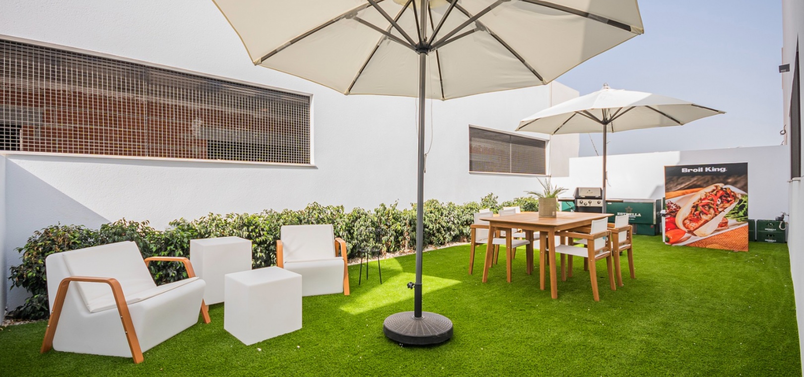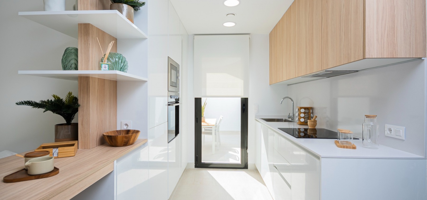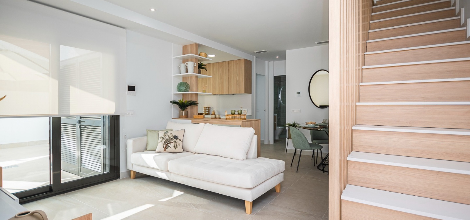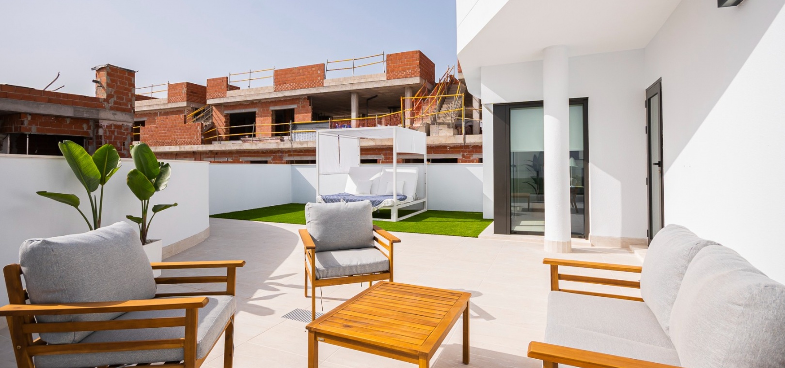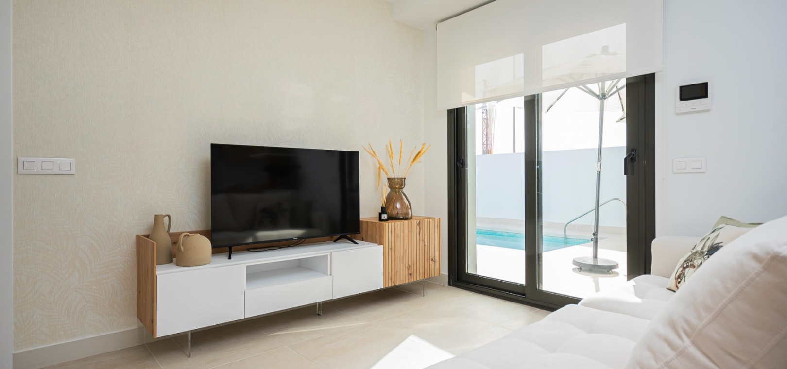 Det finns härliga gemensamma trädgårdar med 2 pooler och varje fastighet inkluderar LED-belysning, förinstallation av varm/kall ventilerad luftkonditionering, utrustat kök med vitvaror och ett säkert underjordiskt utrymme med förvaring.