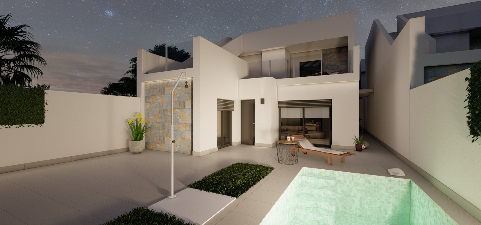 Denna helt nya lyxiga villa med 3 sovrum och 3 badrum ligger i utkanten av Los Alcazares på Roda golfresort som har en fantastisk 18-håls golfbana, 24 timmars gated säkerhet och ett klubbhus med restaurang och solterrass. Villan är byggd till högsta standard och ligger några minuter från centrum som har en mängd bekvämligheter och några minuter från stranden som har en vacker lång strandpromenad där du kan njuta av promenader vid havet.