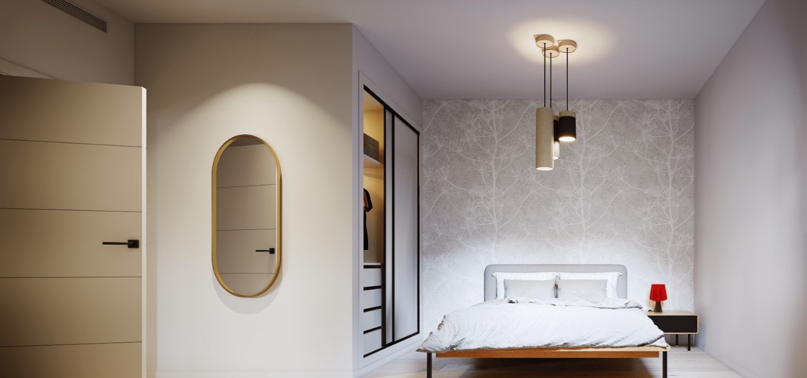 På första våningen finns det stora sovrummet med inbyggda garderober, eget badrum och altandörrar som leder ut till den övre solterrassen. Trappan från terrassen leder upp till det privata solariet på taket där du kan njuta av golfutsikt och sol hela dagen.