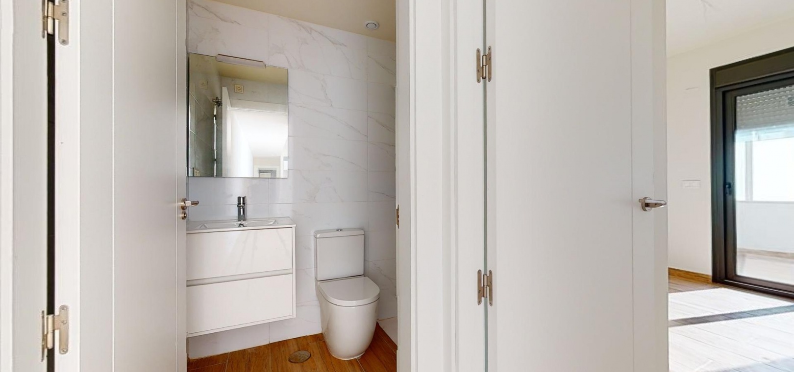 Det andra sovrummet har samma egenskaper som det stora sovrummet, med undantag för att badrummet kan nås utan att korsa rummet, vilket gör att det kan användas som gästbadrum.