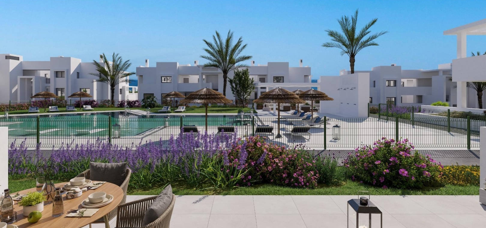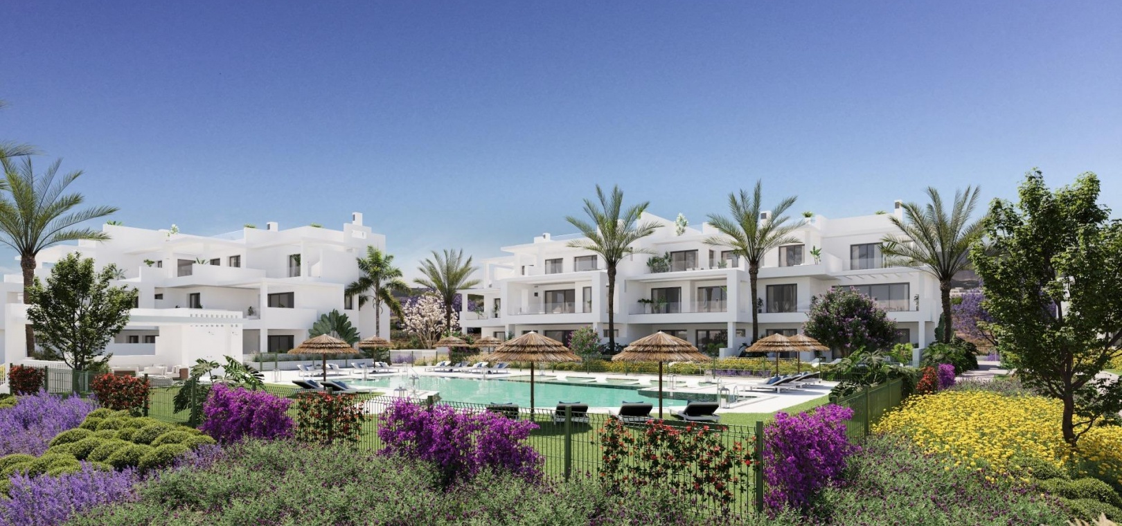 Mycket exklusiv utveckling med endast 70 fastigheter med 1, 2 och 3 sovrum belägna nära sandstranden.
