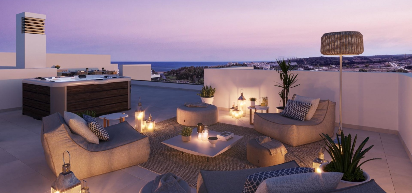 De rymliga terrasserna, de gemensamma områdena med pooler och trädgårdar och utsikten över Medelhavet kommer att vara kännetecknet för detta exklusiva bostadsområde på den vackra Costa del Sol till glädje för alla dess invånare.