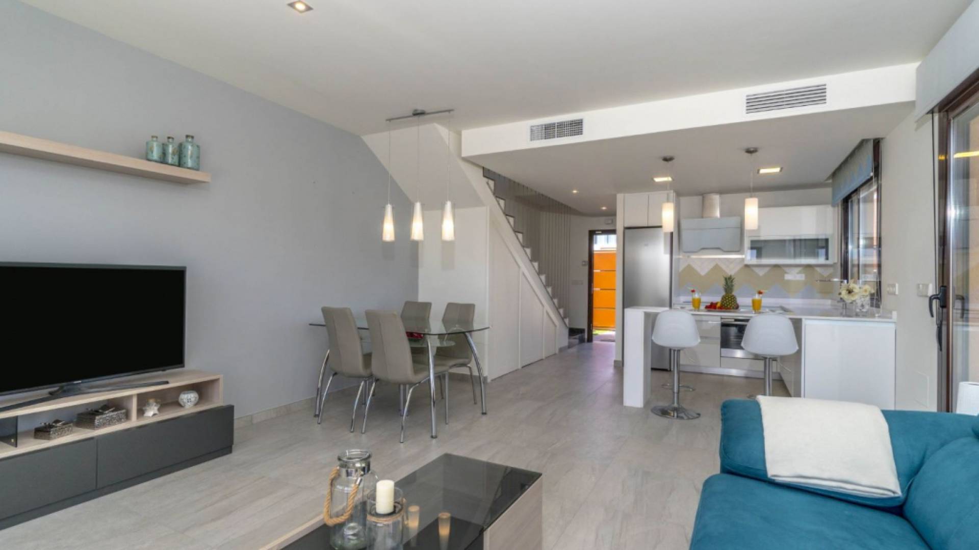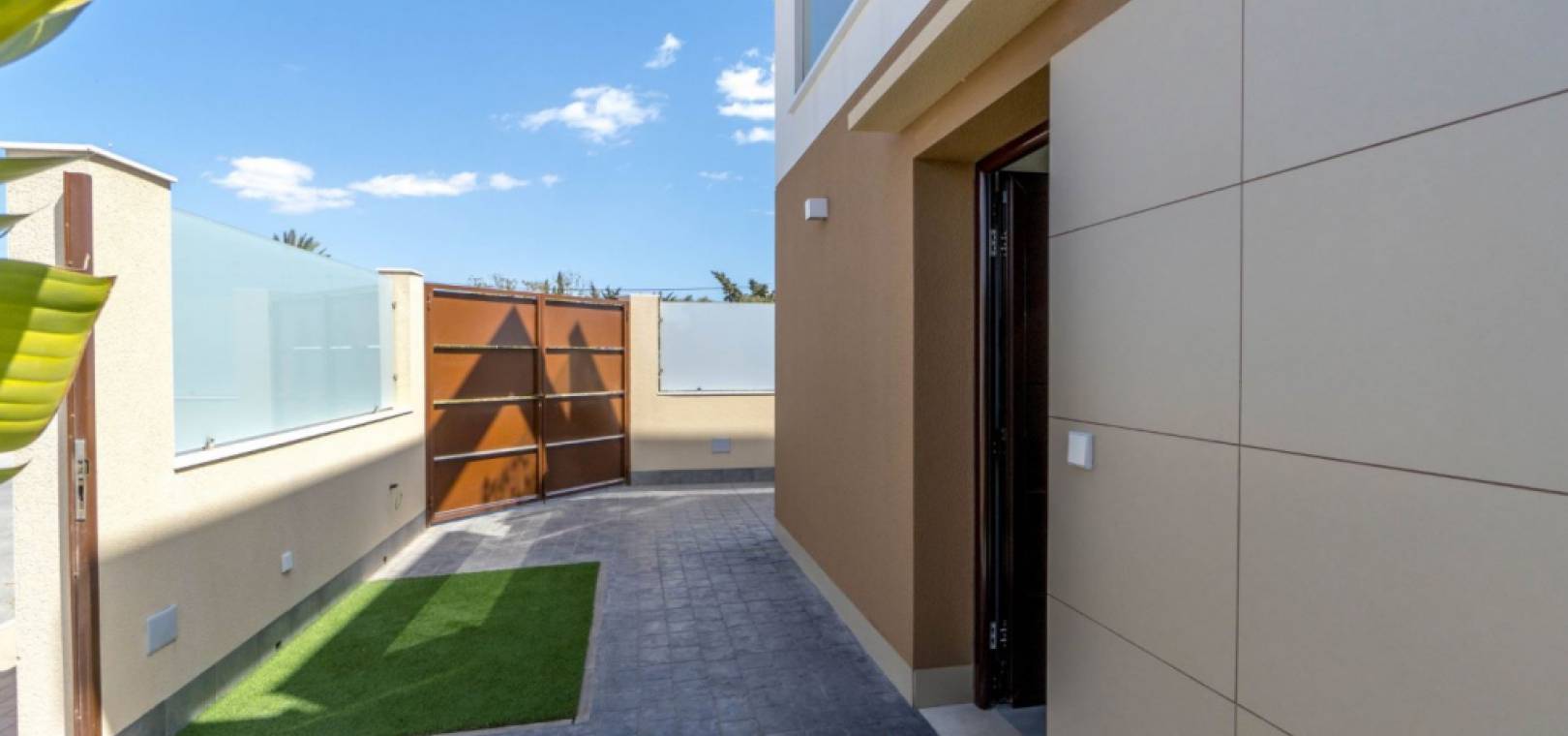 Denna nybyggda fristående nybyggda villa till salu är en av 6 belägna i det vackra området San Pedro del Pinatar som ligger mellan två hav, Medelhavet och Mar Menor. Invånarna i detta område har ett unikt tillfälle att välja mellan att njuta av det varma vattnet i Medelhavet med vackra blå flaggstränder eller saltlagunen i Mar Menor, den största saltsjön i Europa. San Pedro del Pinatar har en stor turist- och ekologisk attraktion för sin naturpark Salinas och Arenales i San Pedro del Pinatar, för golfälskare kan välja mellan 5 av fälten i området som Lo Romero Golf, Las Colinas Golf, Serena Golf , Villamartin Golf, Las Ramblas Golf, bara 5 minuter från fotbollsplan, gym, tennisbanor och cricket. Det är 700 meter från centrum av San Pedro del Pinatar där du kan hitta alla typer av tjänster. I utkanten har de viktiga stadscentrumen som Torrevieja, Murcia, Alicante och Cartagena. Den ansluts enkelt till motorvägen N-332 och motorvägen AP-7 för Medelhavet.