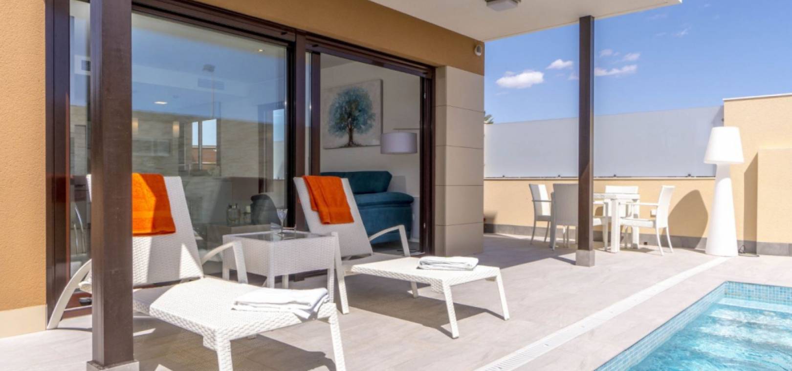 Nyckelfärdig - BARA Färdigställd 3 sovrums fristående villa till salu på en tomt på 164m2 med privat pool i San Pedro del Pinatar, Murcia ..