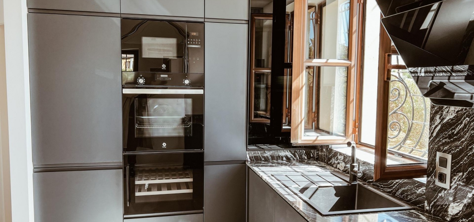 Villan har stora terrasser och pergola, medan interiören erbjuder ett stilfullt modernt hem med modernt utseende.