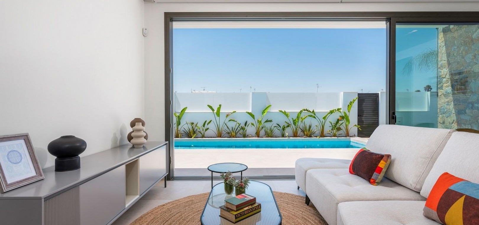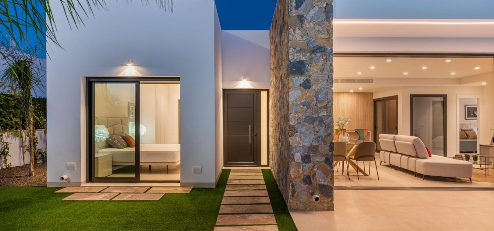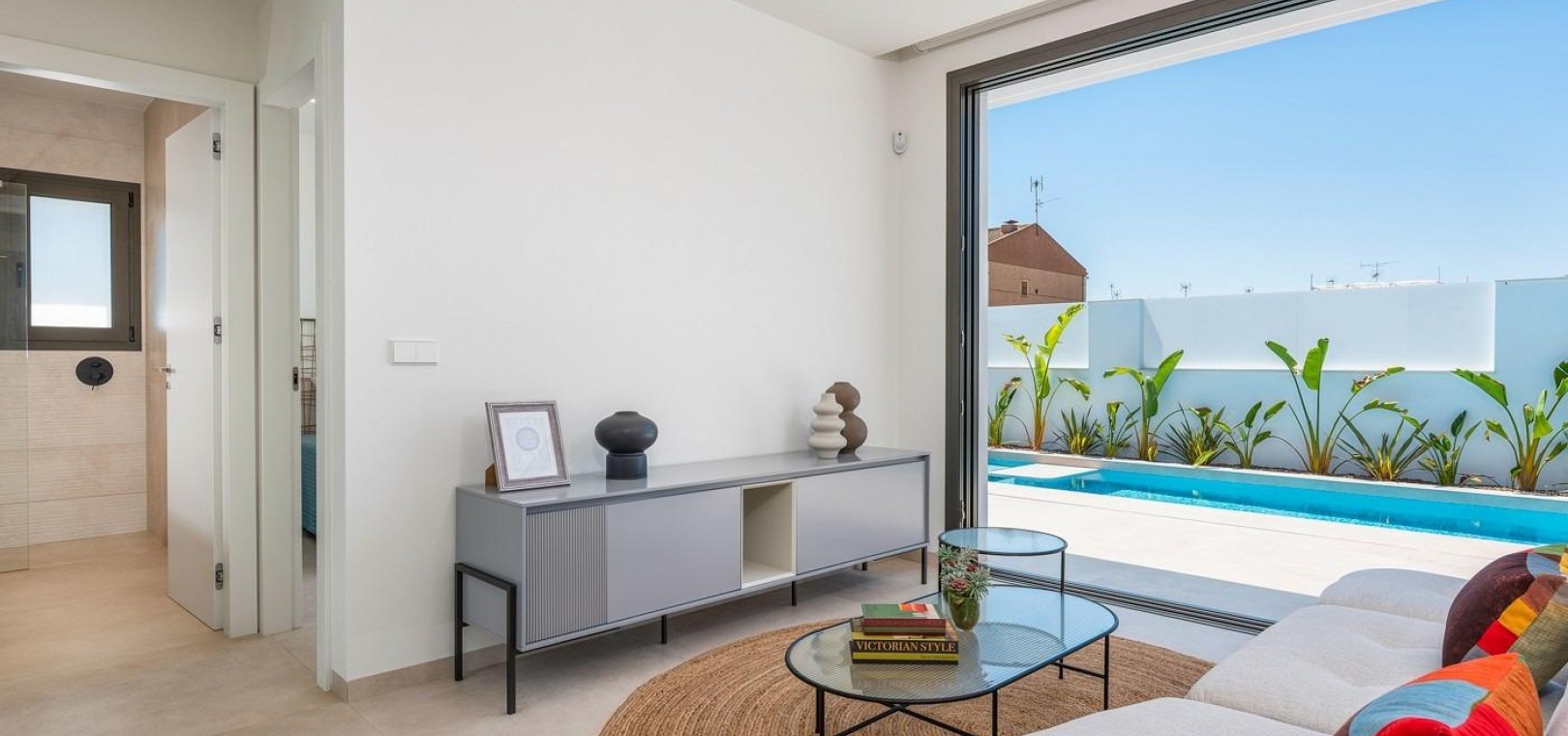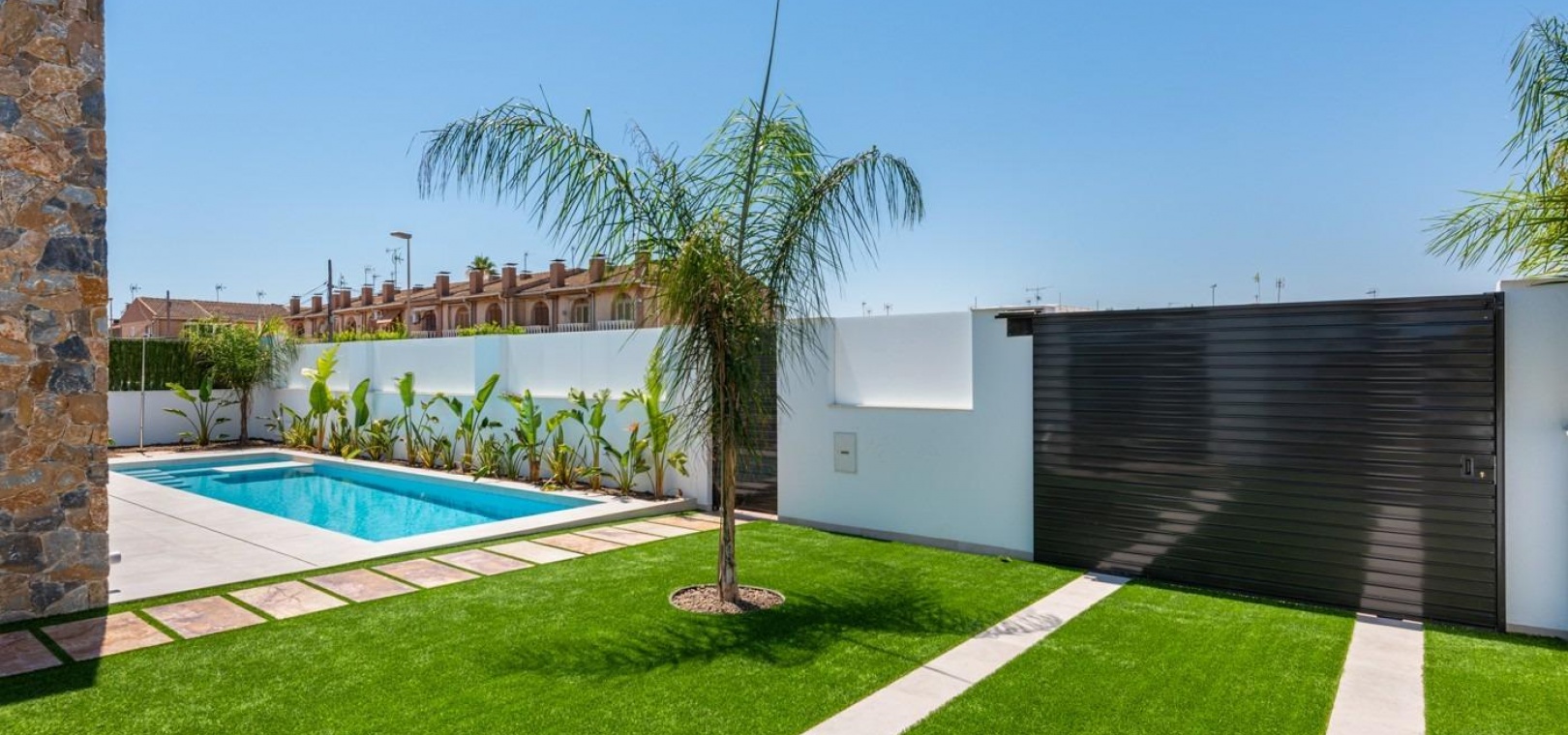 Villor byggs på 1 våning och består av 3 sovrum, 2 badrum, öppet kök, vardagsrum med öppen utsikt till terrassen, privat trädgård med pool.