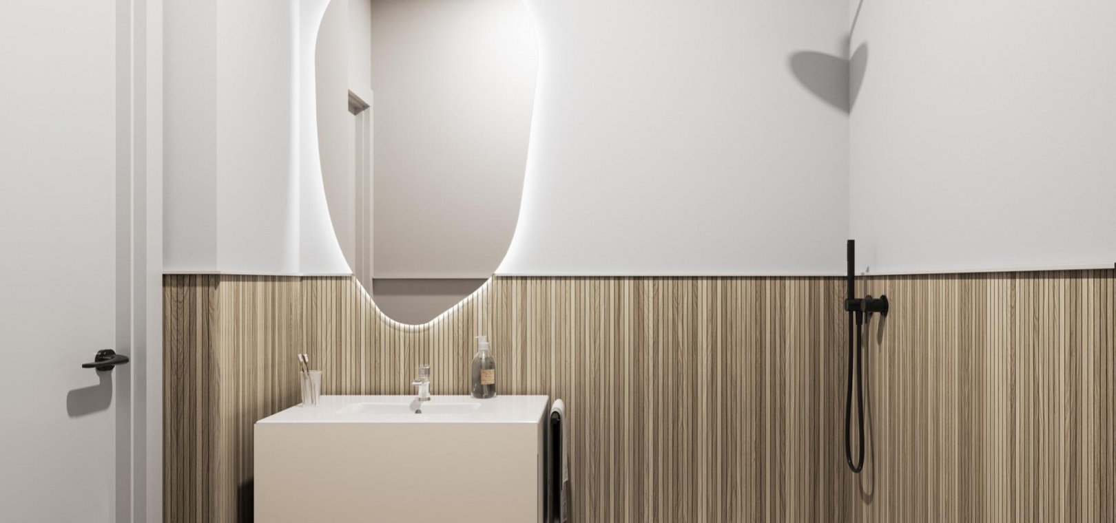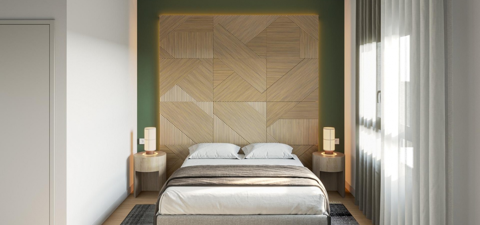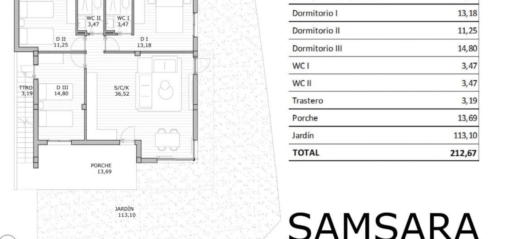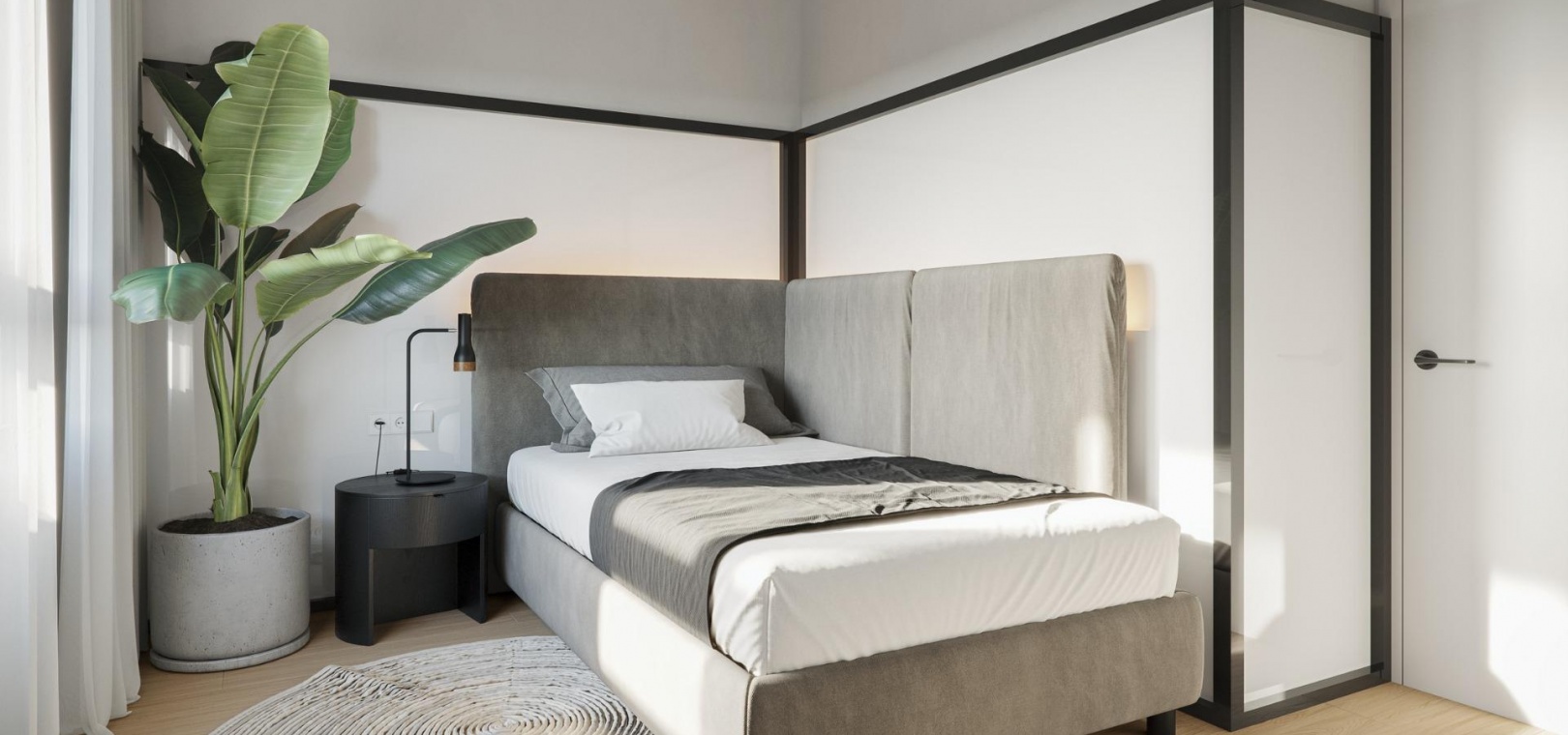 Bostäderna består av bungalowlägenheter med 2 och 3 sovrum, på bottenvåningen med en privat trädgård eller översta våningen med ett privat solarium.