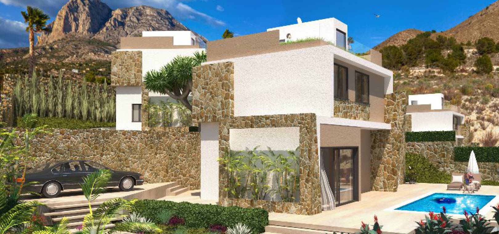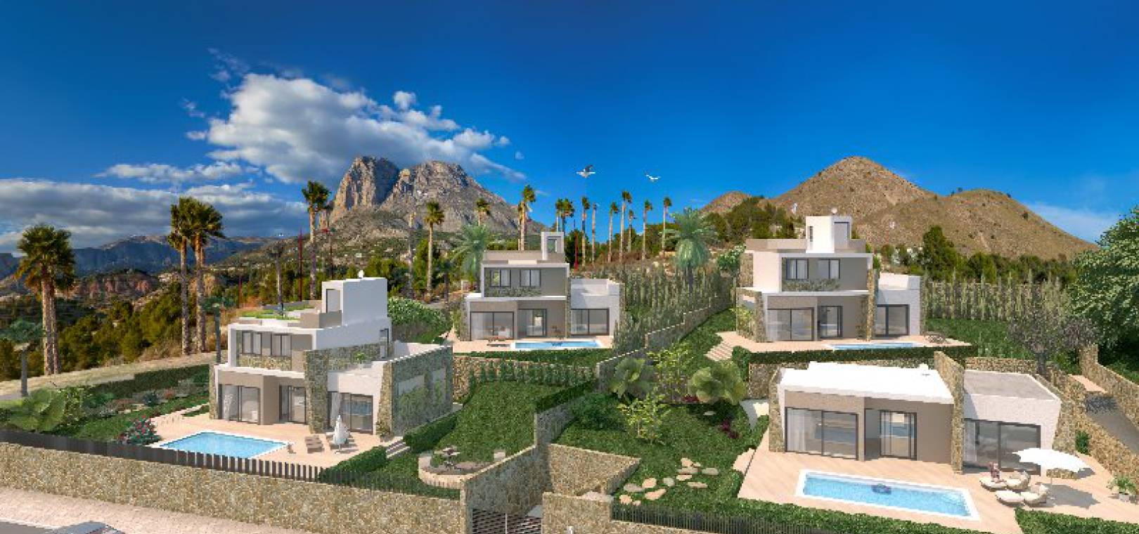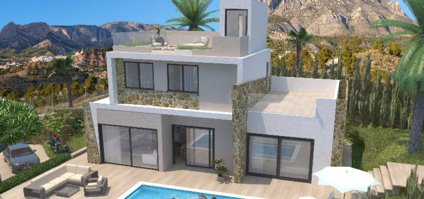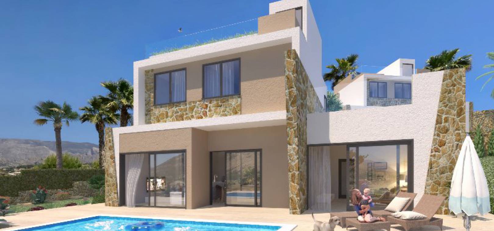 Begränsat erbjudande om lansering! 20 000 euro möbler värda ingår i priset på dessa villaer med 3 sovrum, 3 badrum, 3 badrum, med privata pooler i Salisol Hills, Balcones de Finestrat, Finestrat, Costa Blanca. Stort 36m2 vardagsrum / matrum med fönster från golv till tak och fullt utrustat kök i öppen planlösning, 3 x dubbelrum, sovrum på bottenvåningen har fönster från golv till tak som ger panoramautsikt och direkt tillgång till poolen, klädkammare och rymliga badrum, 2 x badrum på 1: a våningen, valfri solterrass på 1: a våningen, solarium på taket med 360 ° utsikt över havet och bergen, stor 402m2 trädgård med en uppfart för terrängparkering och en privat pool och mycket mycket Mer. Dessa fantastiska villor har alla nödvändiga licenser och rådhuspapper. Alla pengar som betalas under byggprocessen är 100% säkra och omfattas av en bankgaranti som måste erbjudas köpare enligt spansk lag. De är byggda efter de allra senaste designerna och använder endast material av högsta kvalitet och består kort av följande. Finestrat är en härlig spansk stad som ligger bara 10 minuters bilresa inåt landet från Benidorm.